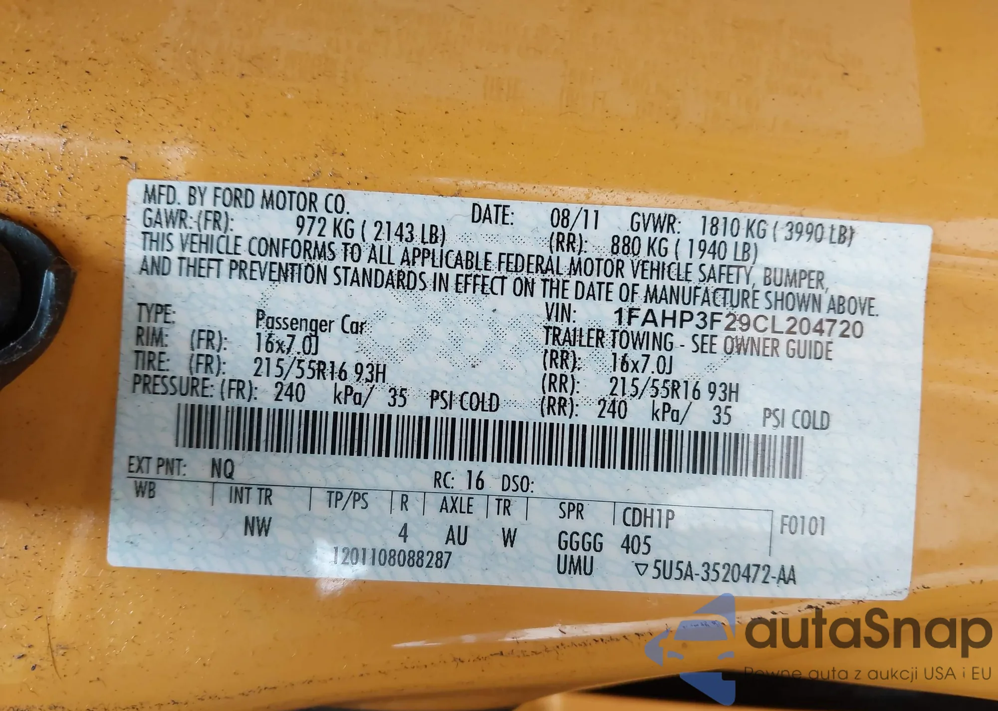 VIN: 1FAHP3F29CL204720