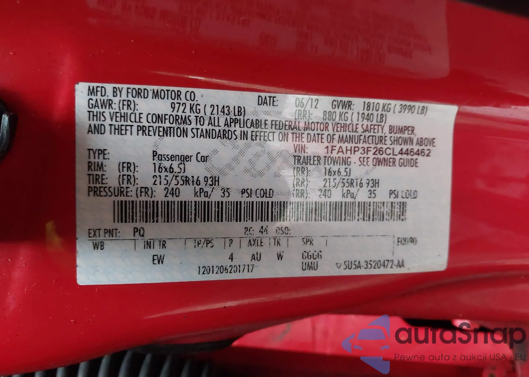 Автомобиль Ford Focus 2012 (VIN 1FAHP3F26CL446462) ранее не участвовал в торгах. Документы чистые, пробег соответствует или ниже среднего по рынку. Продаётся страховой компанией — рекомендуем покупку. Доставка в порт займет около 6–8 недель.