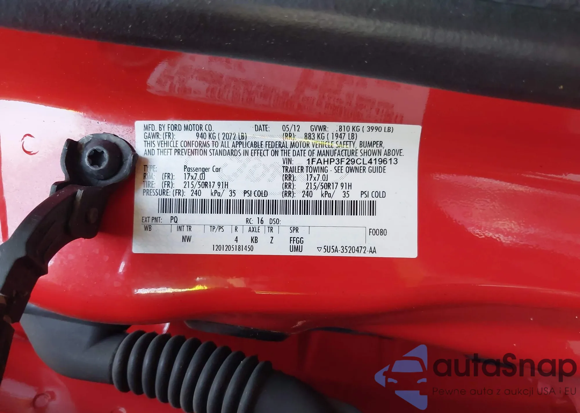 VIN: 1FAHP3F29CL419613