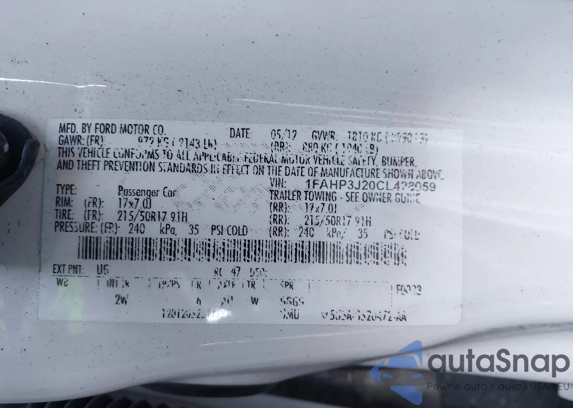 Автомобиль Ford Focus 2012 (VIN 1FAHP3J20CL428059) ранее не участвовал в торгах. Документы чистые, пробег соответствует или ниже среднего по рынку. Продаётся страховой компанией — рекомендуем покупку. Доставка в порт займет около 6–8 недель.