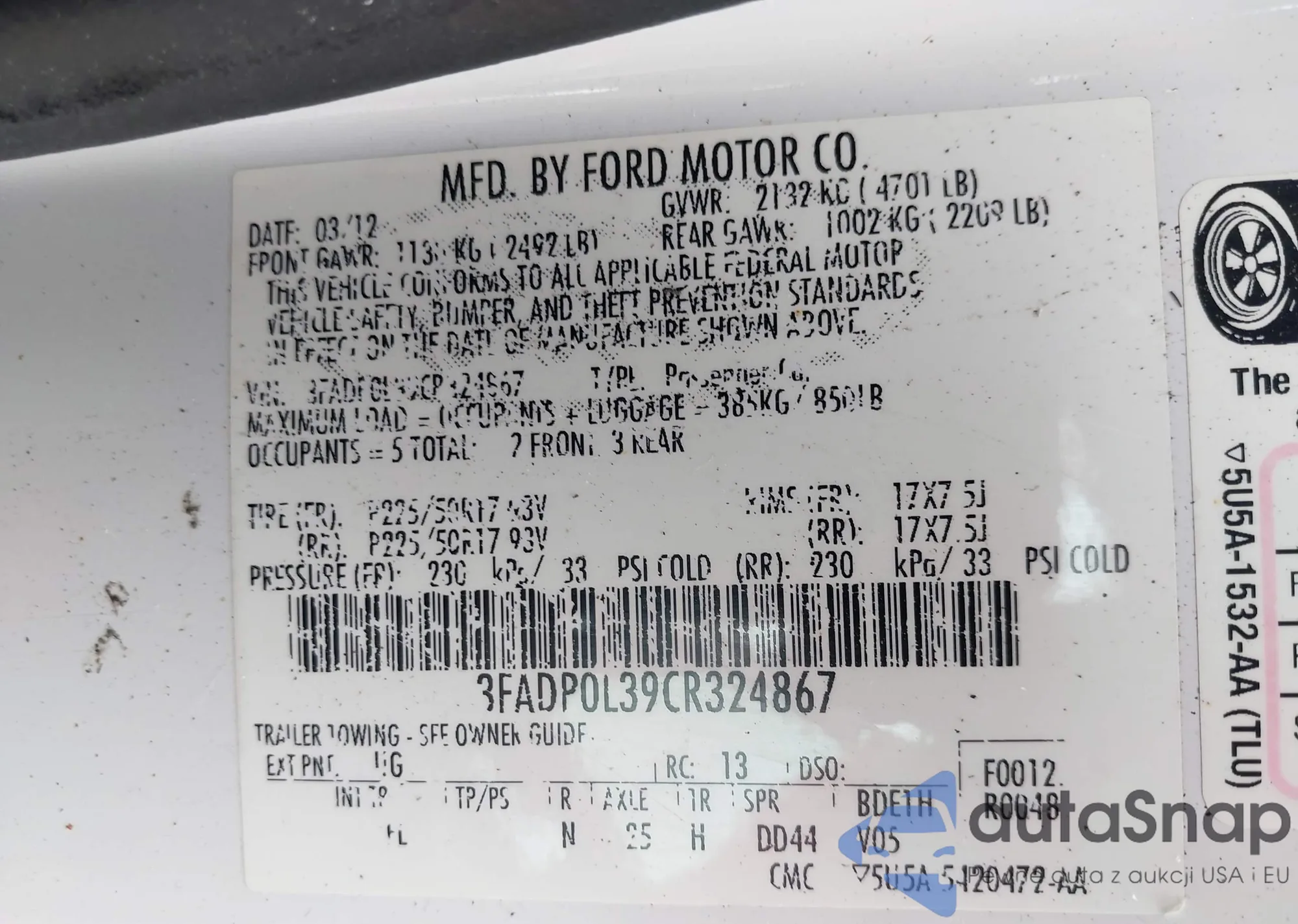 VIN: 3FADP0L39CR324867