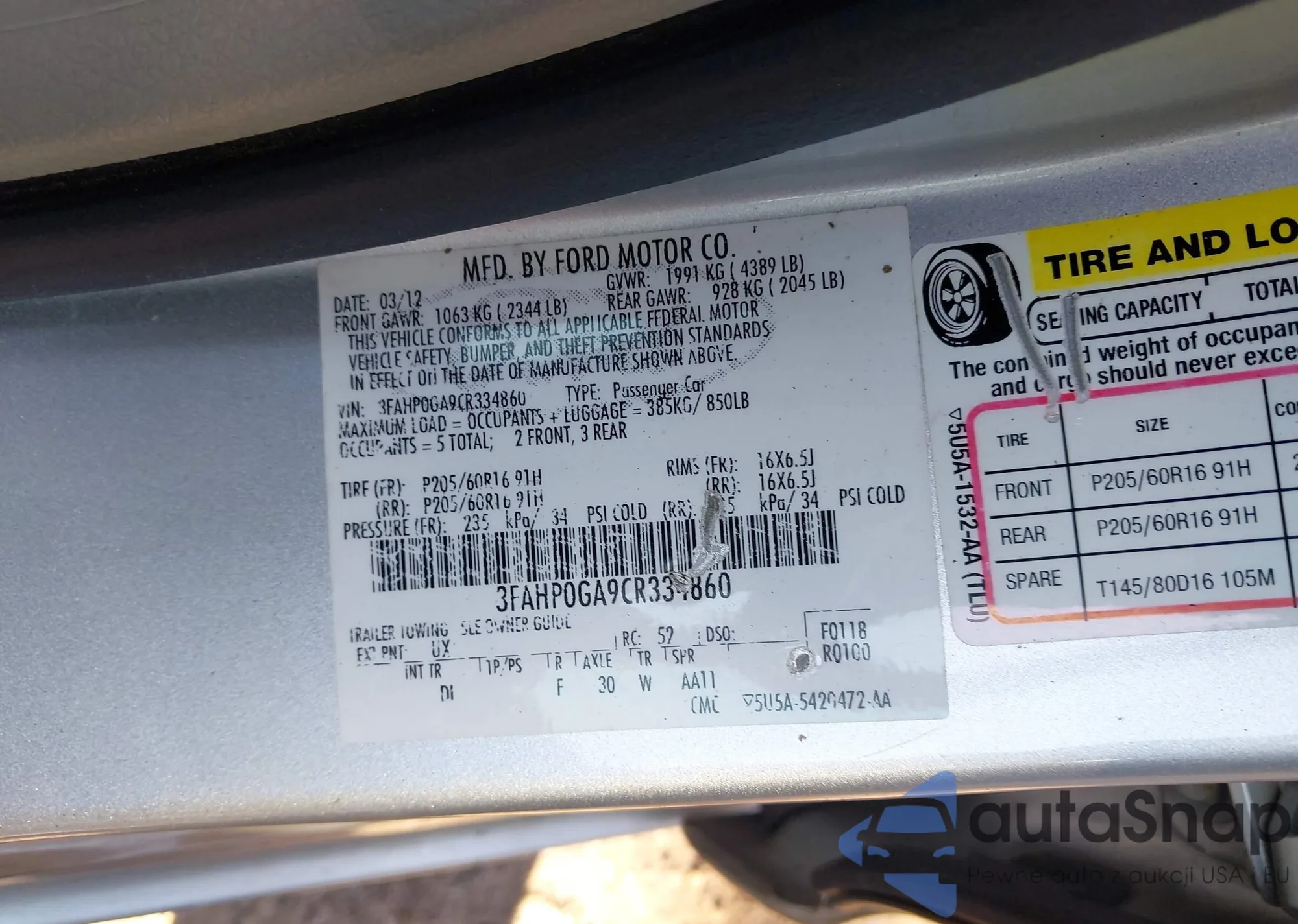 VIN: 3FAHP0GA9CR334860