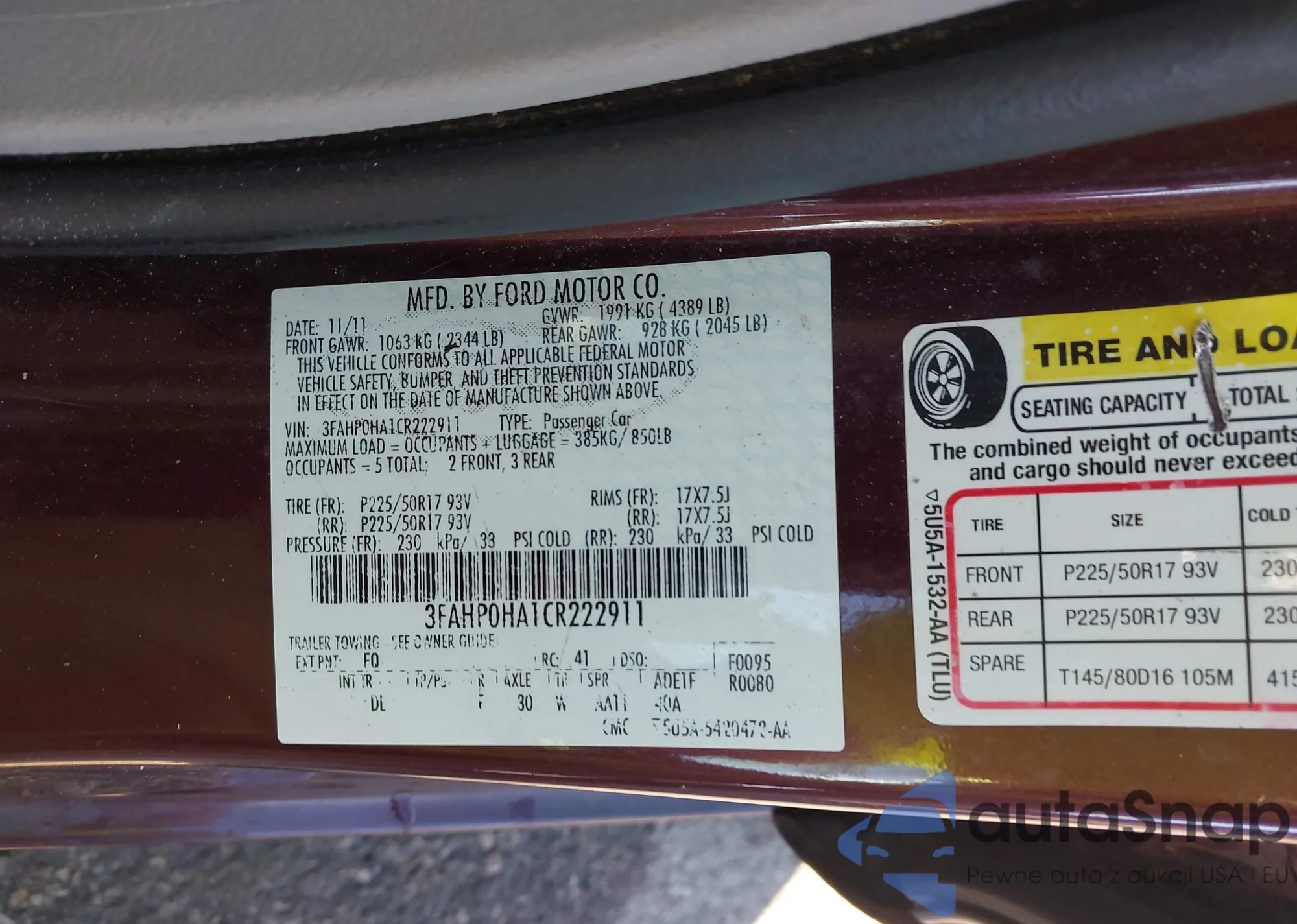 VIN: 3FAHP0HA1CR222911