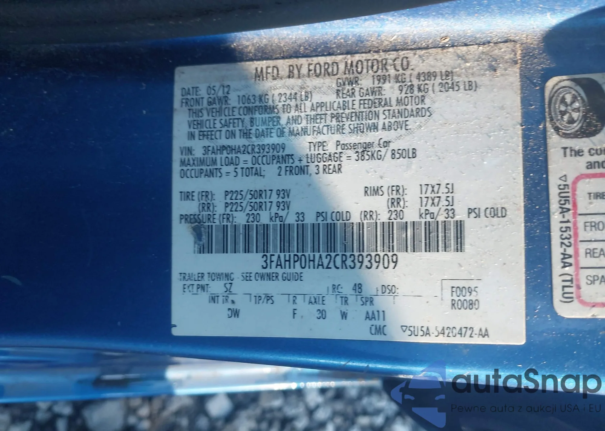 VIN: 3FAHP0HA2CR393909