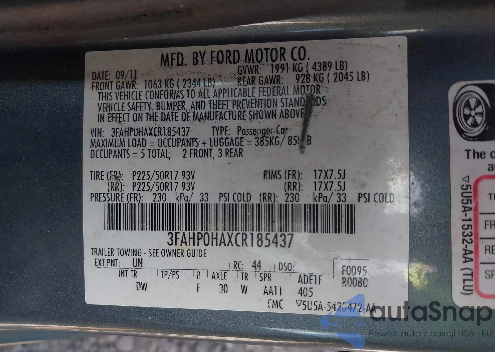 VIN: 3FAHP0HAXCR185437