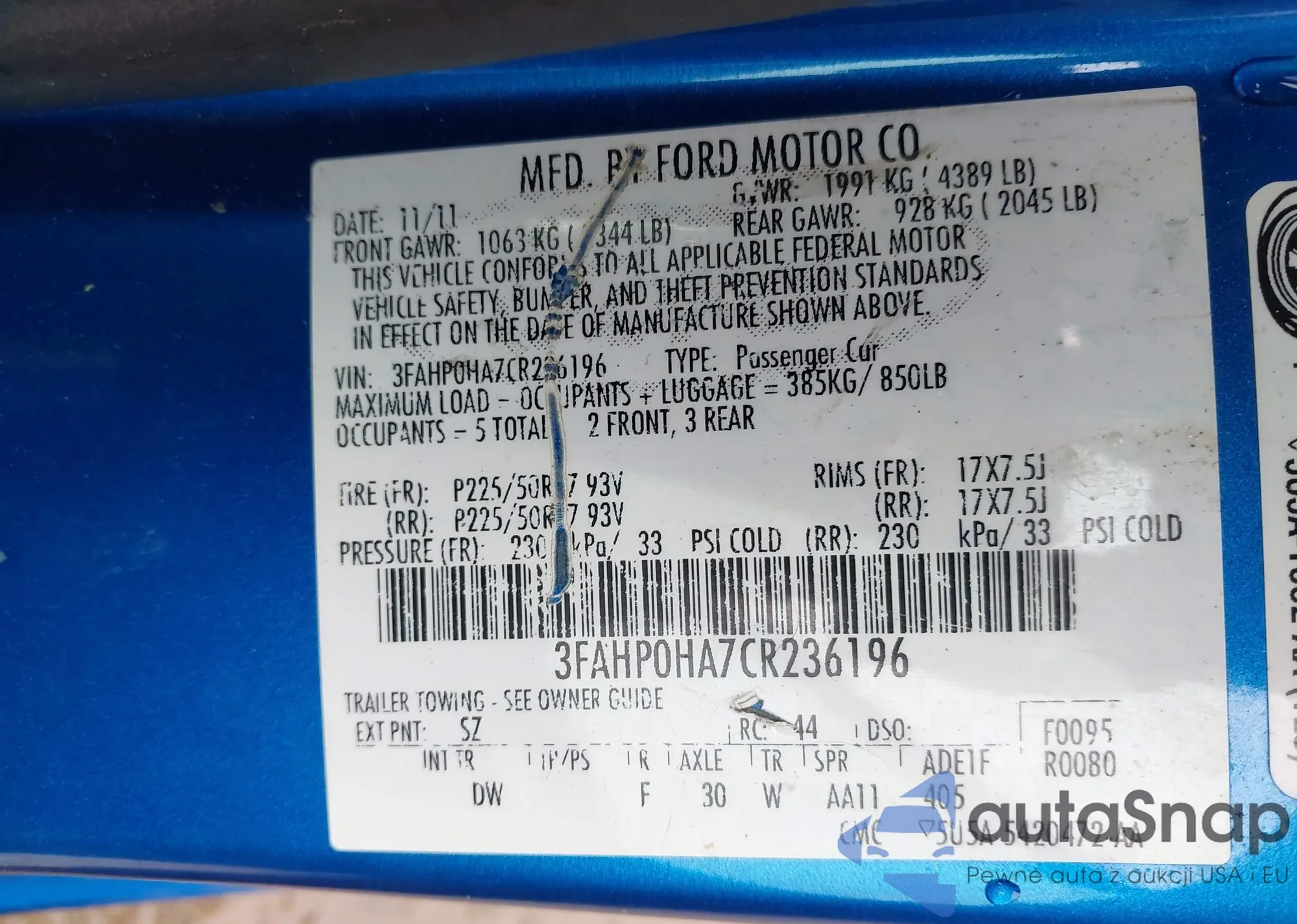 Автомобиль Ford Fusion 2012 (VIN 3FAHP0HA7CR236196) ранее не участвовал в торгах. Документы чистые, пробег соответствует или ниже среднего по рынку. Продаётся страховой компанией — рекомендуем покупку. Доставка в порт займет около 6–8 недель.