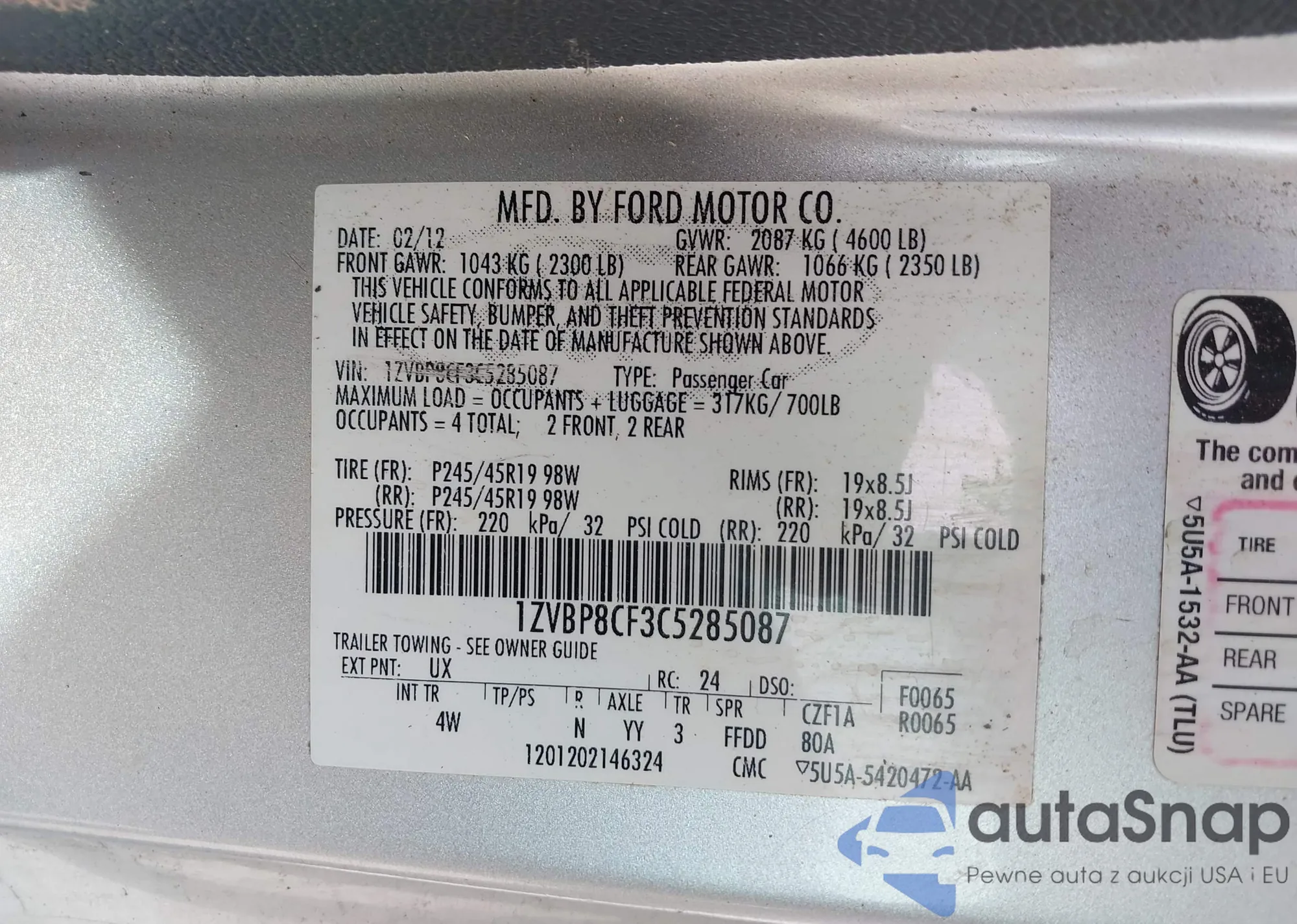 VIN: 1ZVBP8CF3C5285087