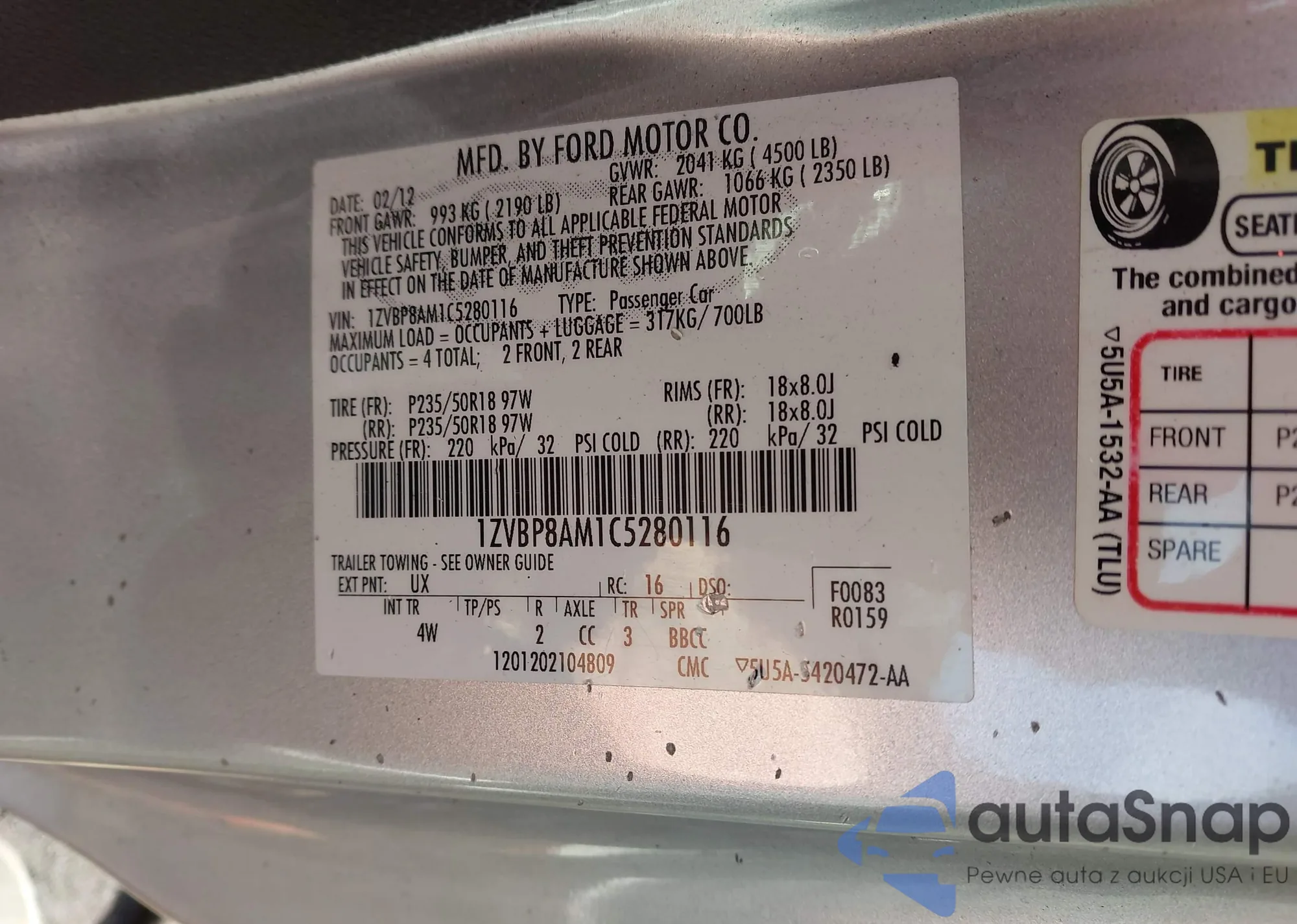 VIN: 1ZVBP8AM1C5280116
