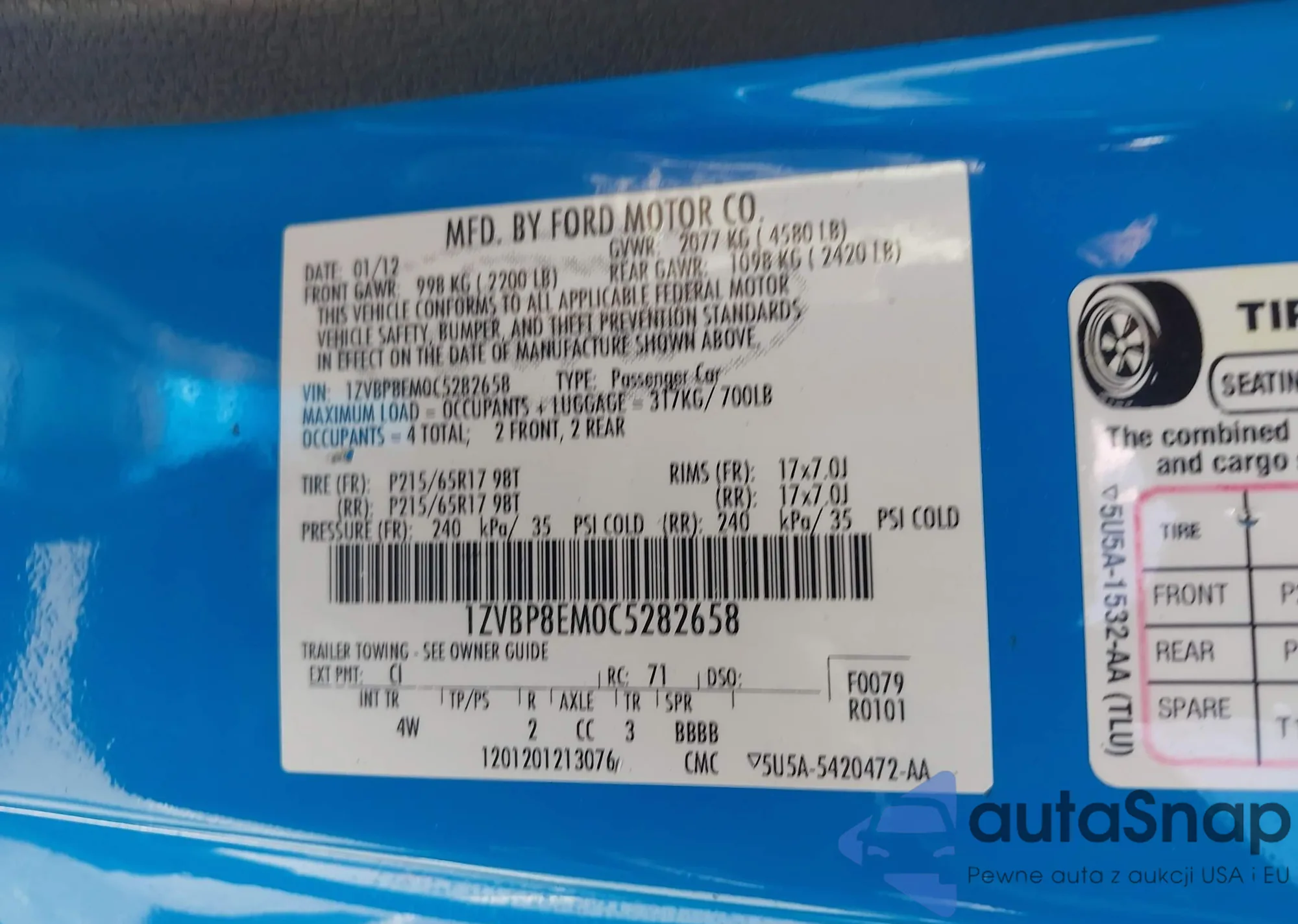 VIN: 1ZVBP8EM0C5282658