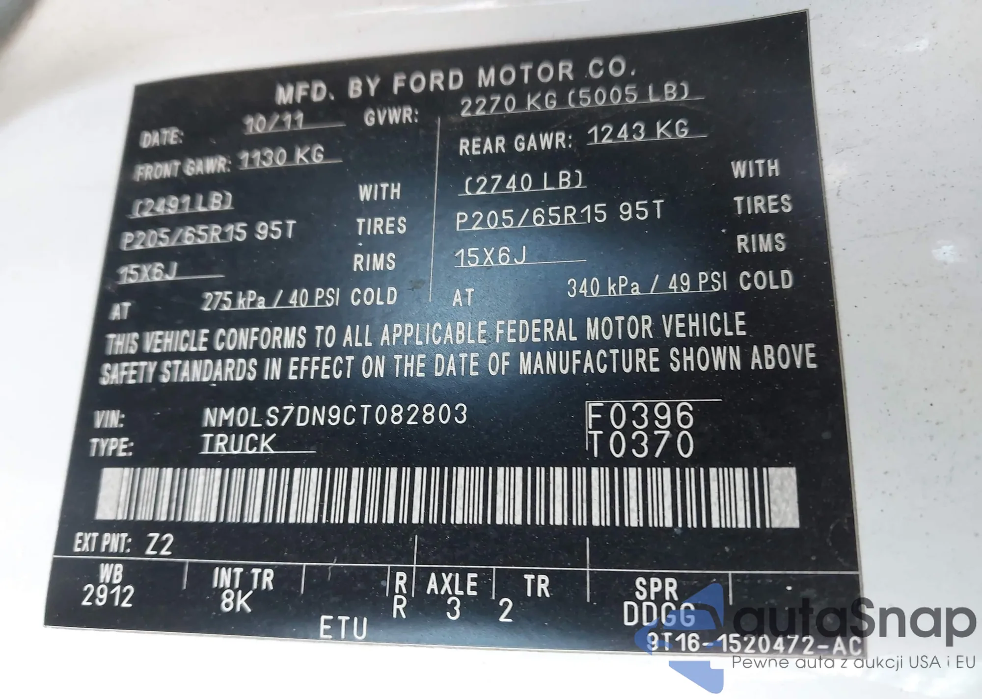 Автомобиль Ford Transit 2012 (VIN NM0LS7DN9CT082803) ранее не участвовал в торгах. Документы чистые, пробег соответствует или ниже среднего по рынку. Продаётся страховой компанией — рекомендуем покупку. Доставка в порт займет около 6–8 недель.