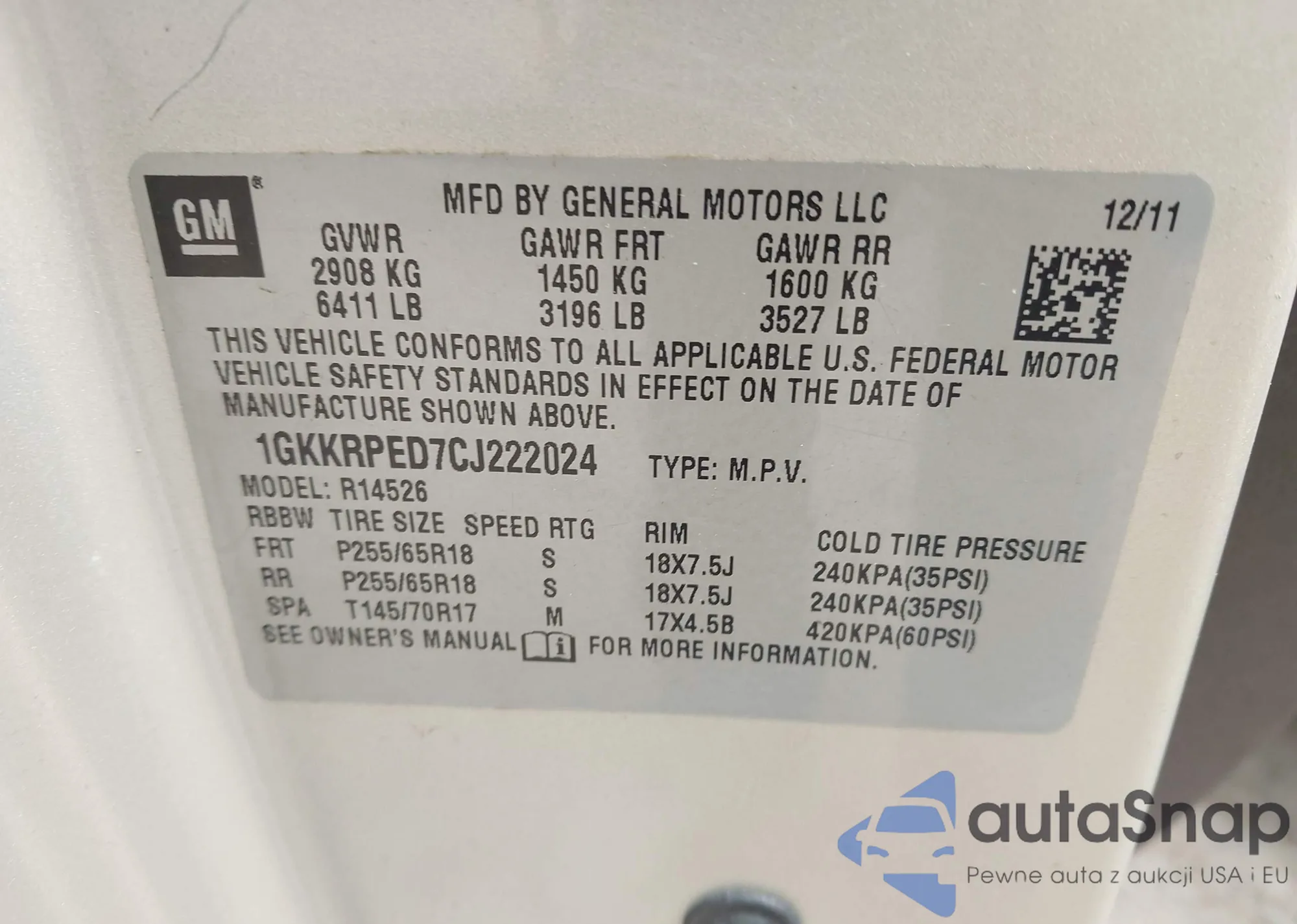• VIN: 1GKKRPED7CJ222024