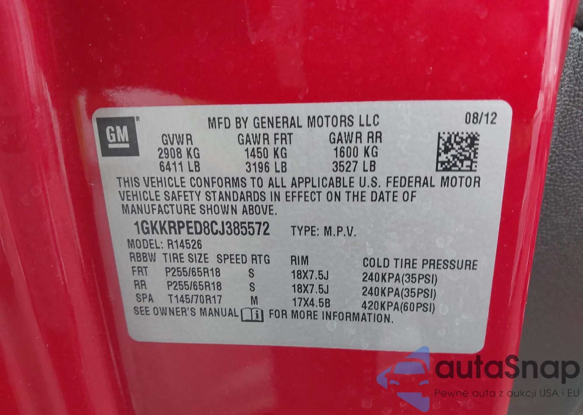 VIN: 1GKKRPED8CJ385572
