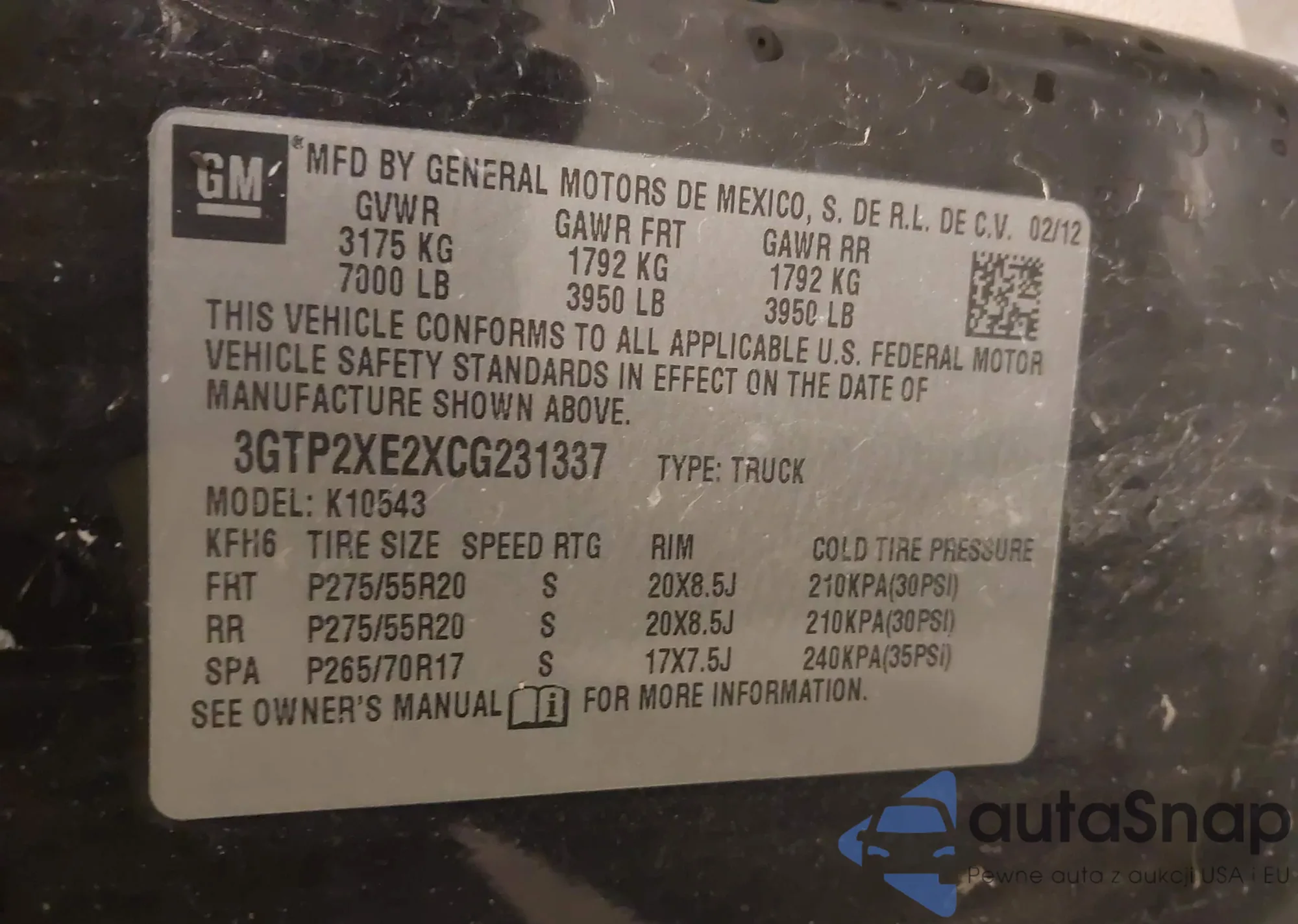 VIN: 3GTP2XE2XCG231337