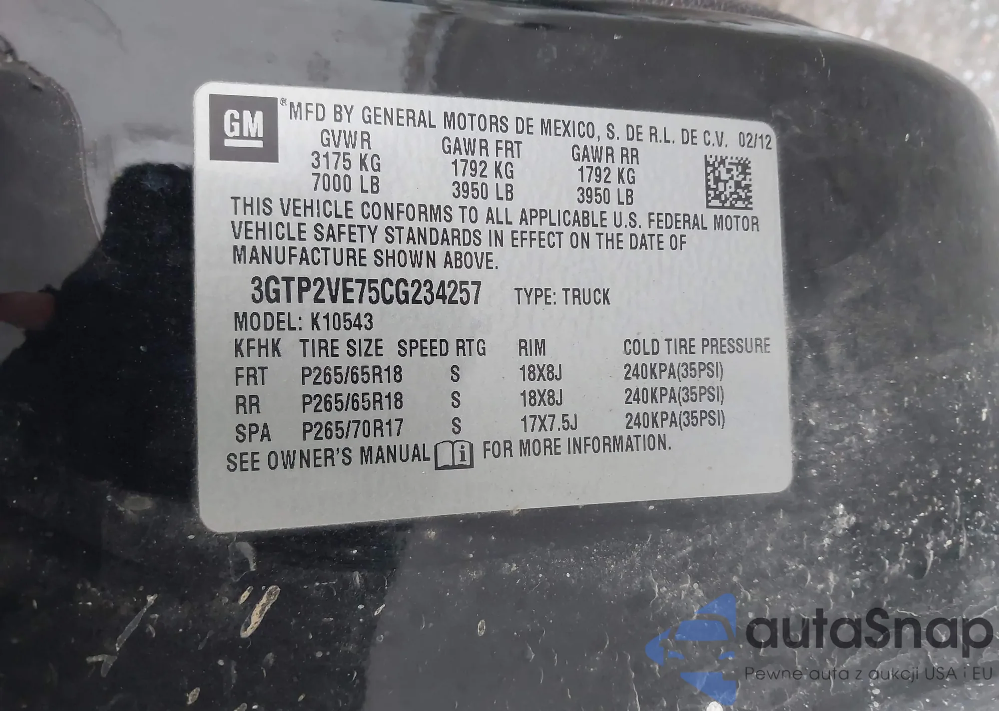 VIN: 3GTP2VE75CG234257