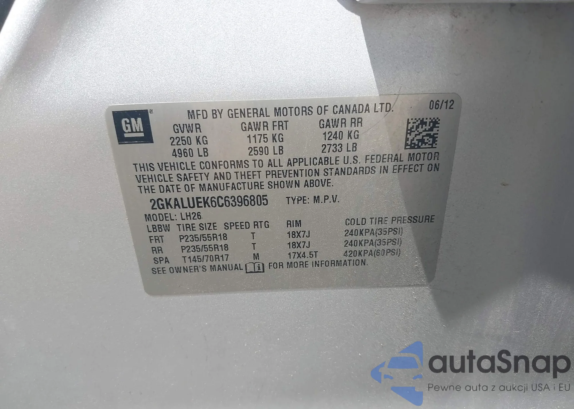 • VIN: 2GKALUEK6C6396805
