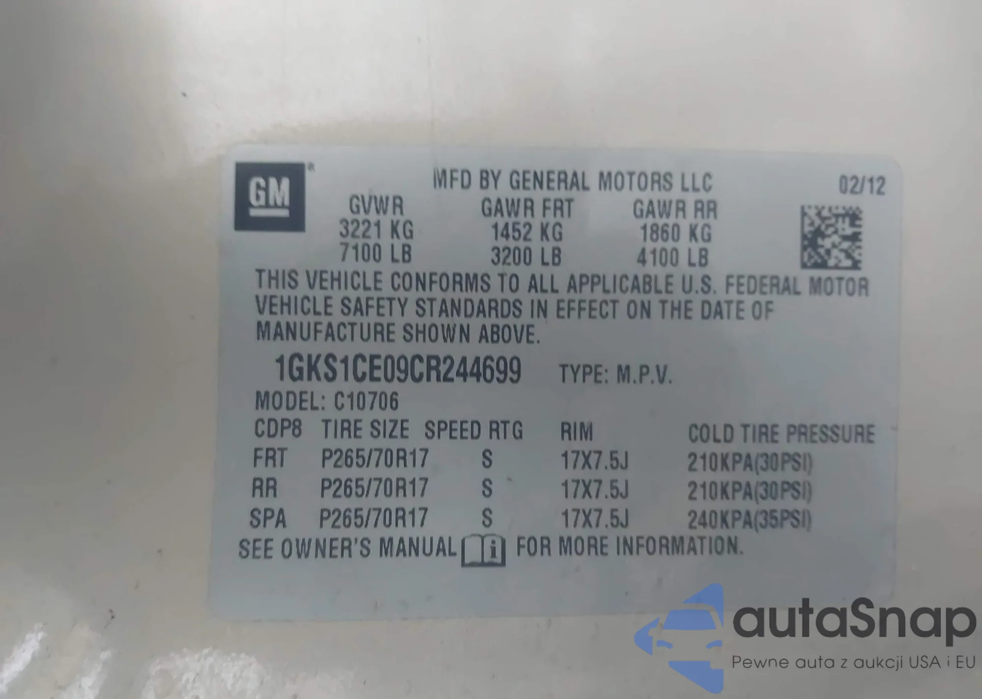 Автомобиль GMC Yukon 2012 (VIN 1GKS1CE09CR244699) ранее не участвовал в торгах. Документы чистые, пробег соответствует или ниже среднего по рынку. Продаётся страховой компанией — рекомендуем покупку. Доставка в порт займет около 6–8 недель.