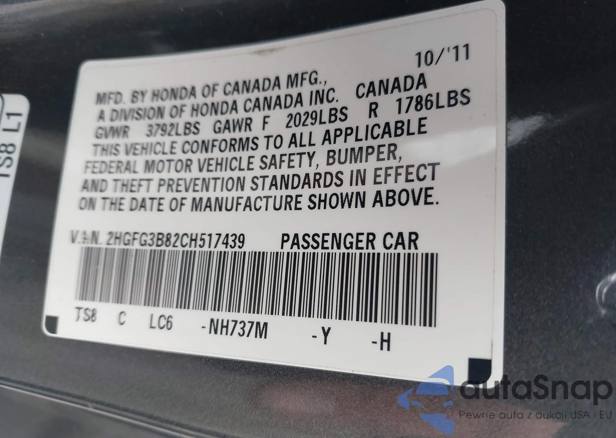 VIN: 2HGFG3B82CH517439