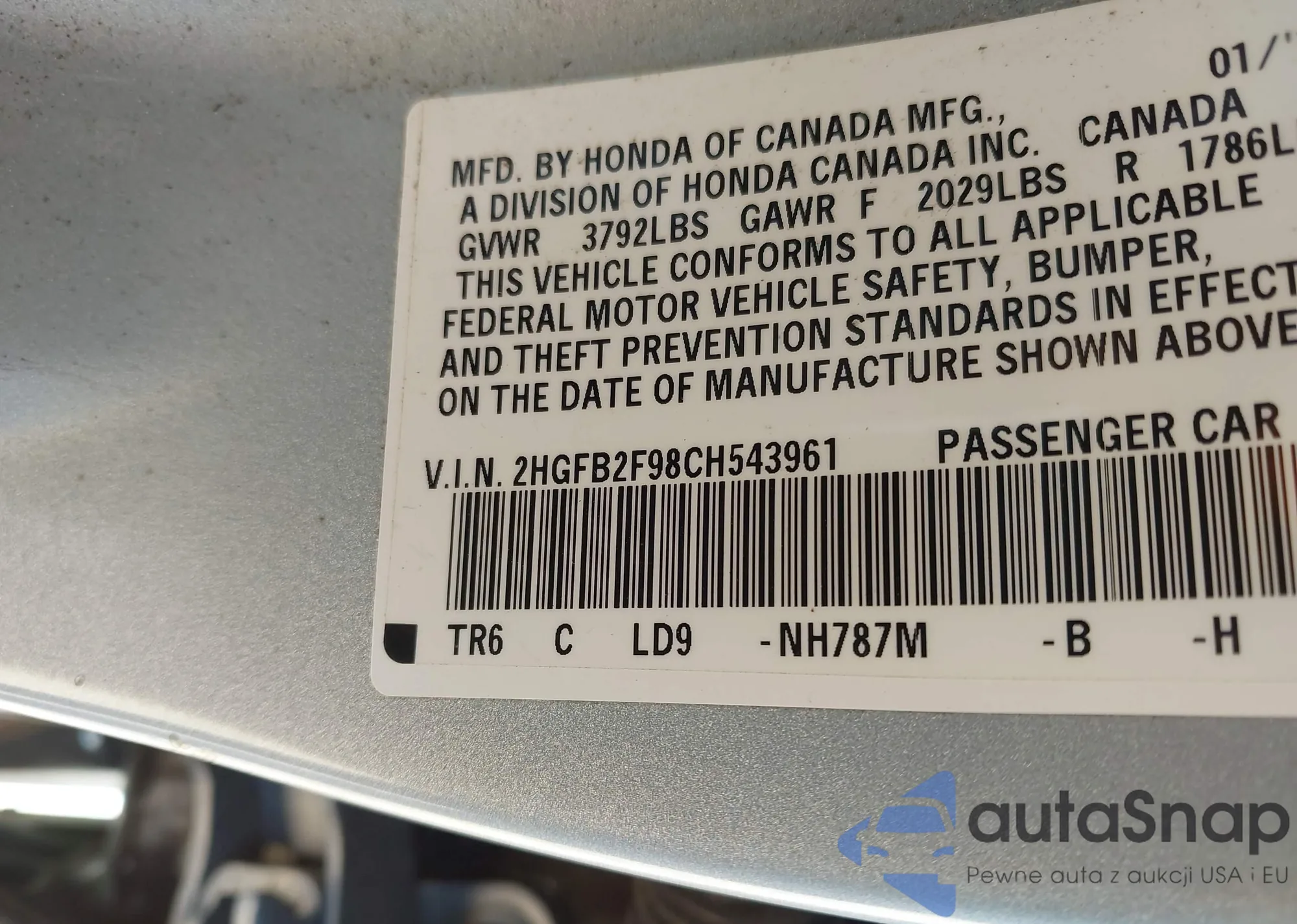 VIN: 2HGFB2F98CH543961