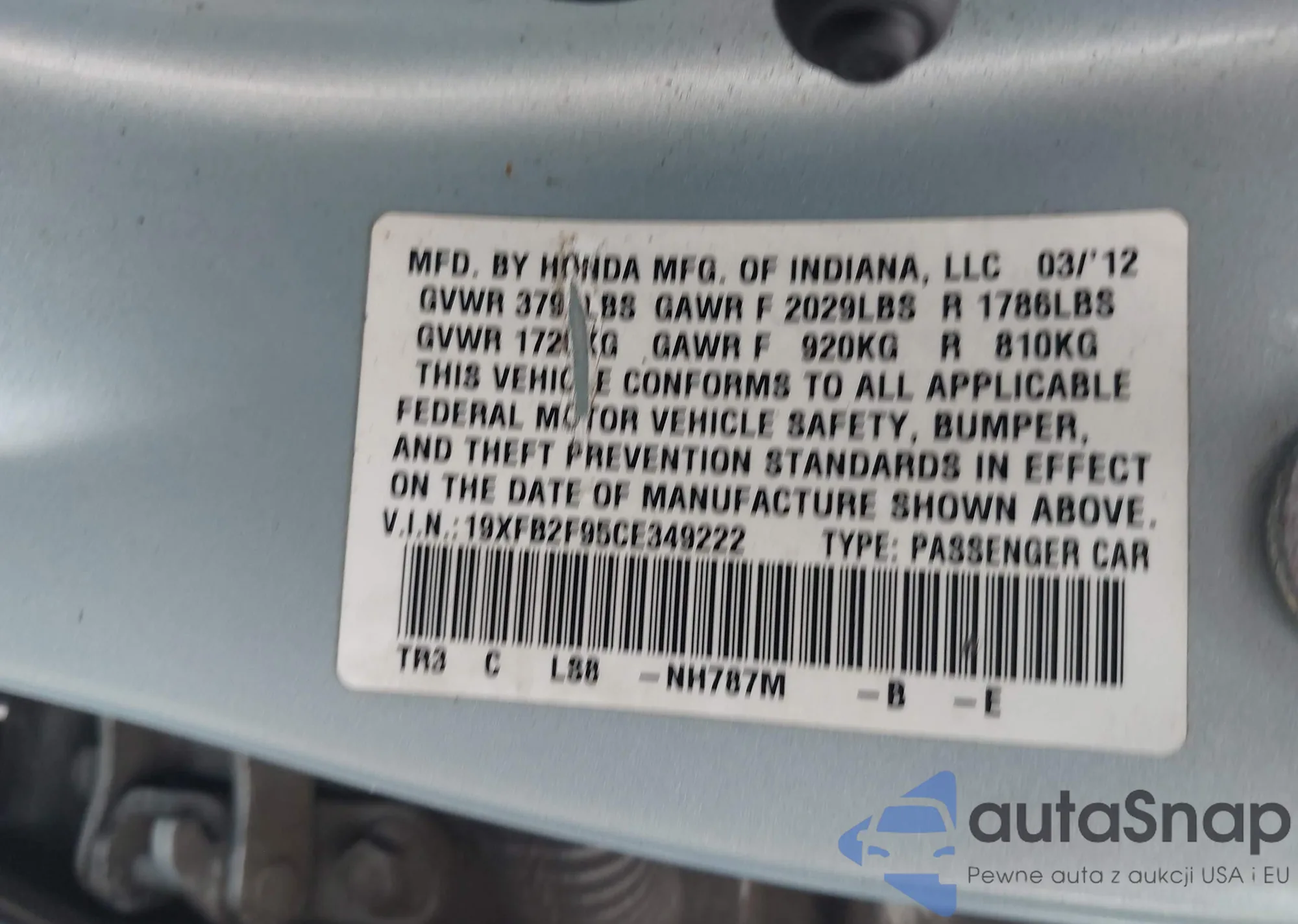 VIN: 19XFB2F95CE349222