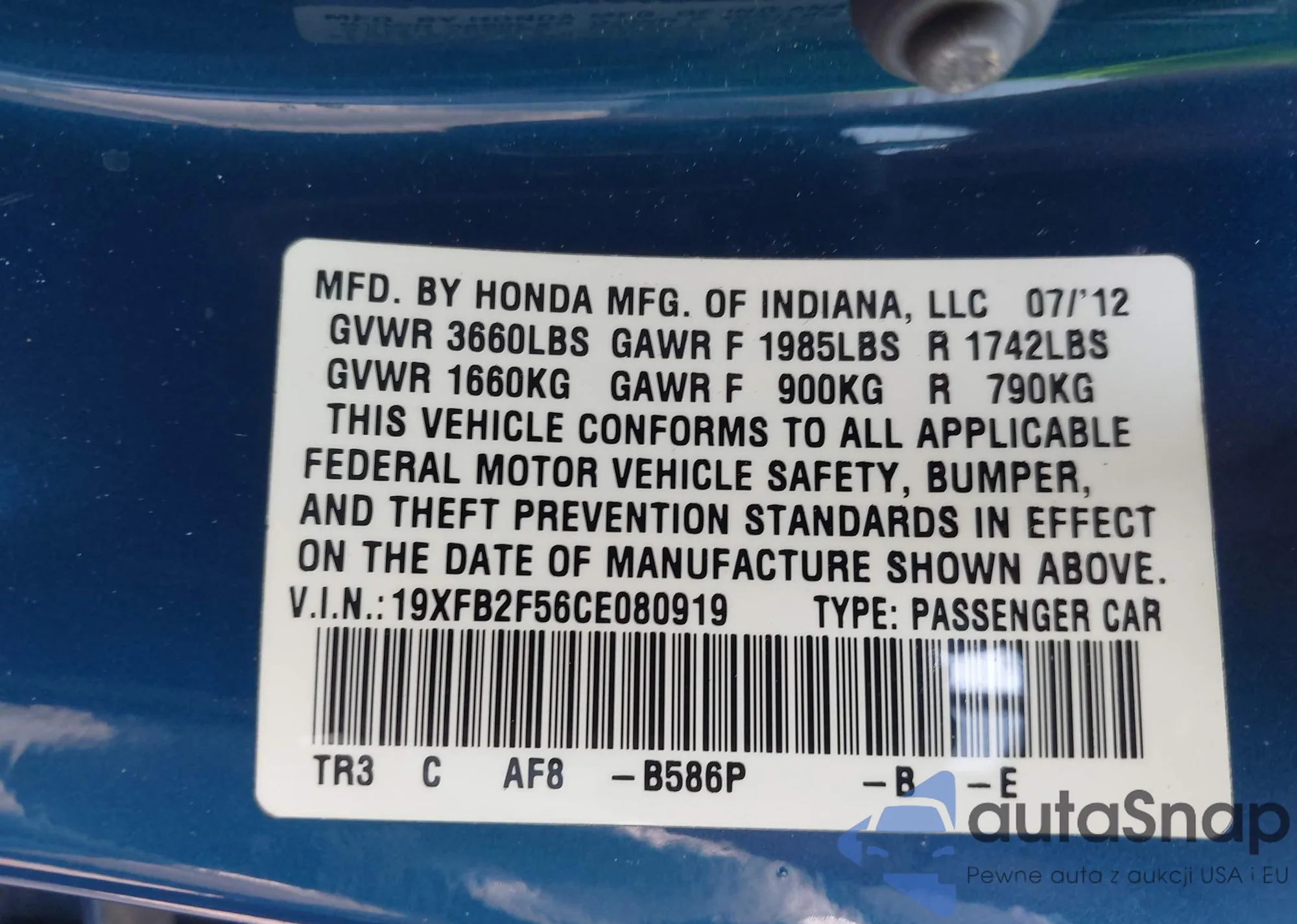 VIN: 19XFB2F56CE080919