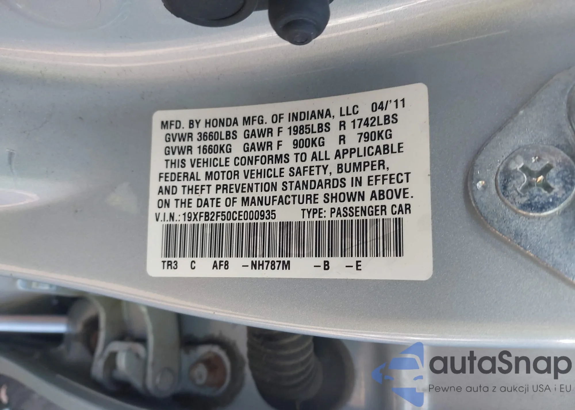 VIN: 19XFB2F50CE000935