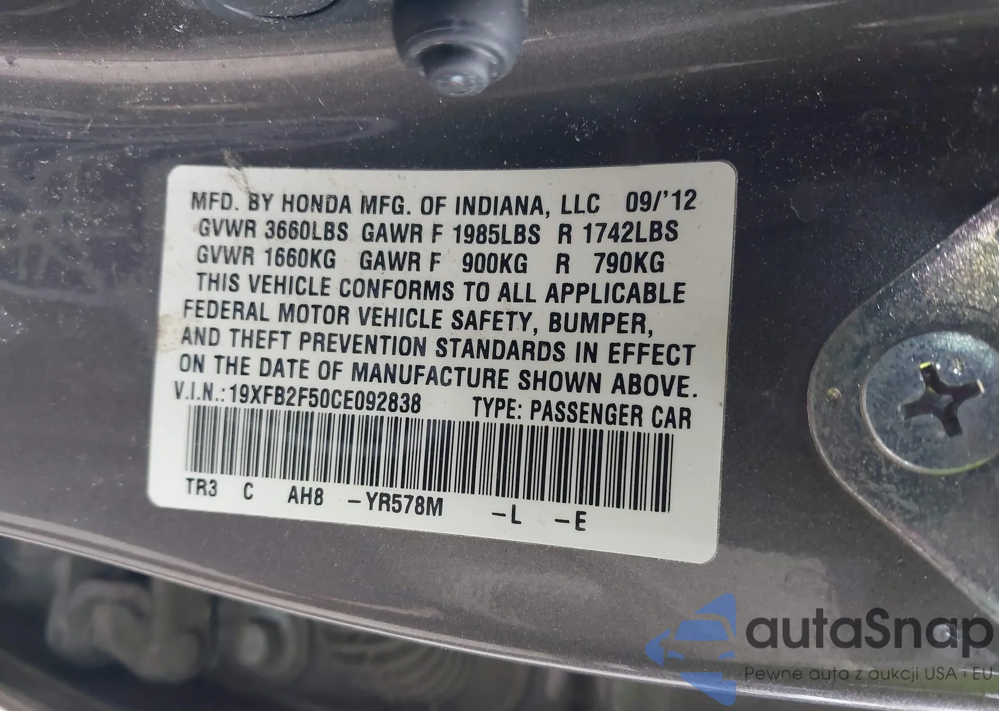 VIN: 19XFB2F50CE092838