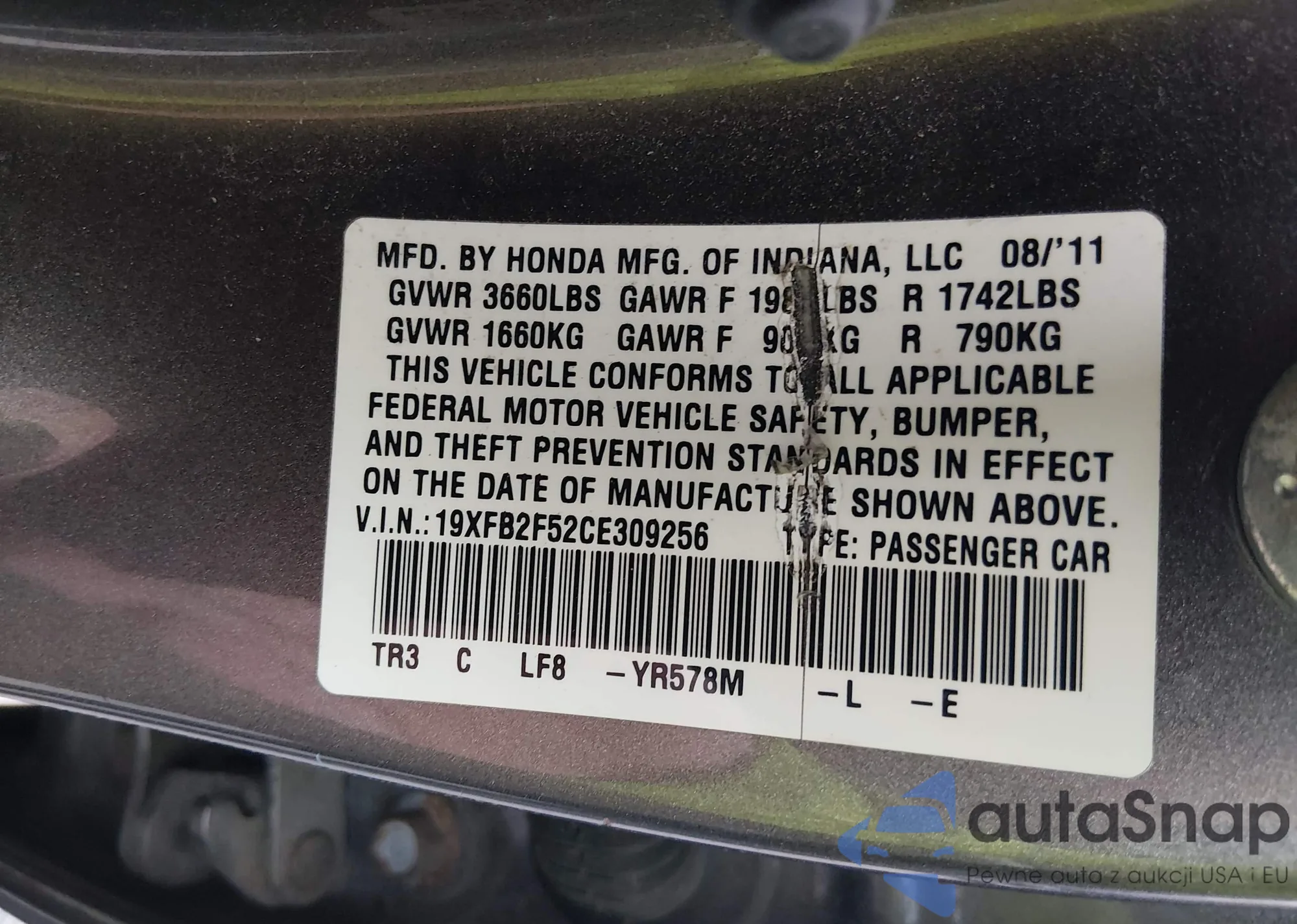 VIN: 19XFB2F52CE309256