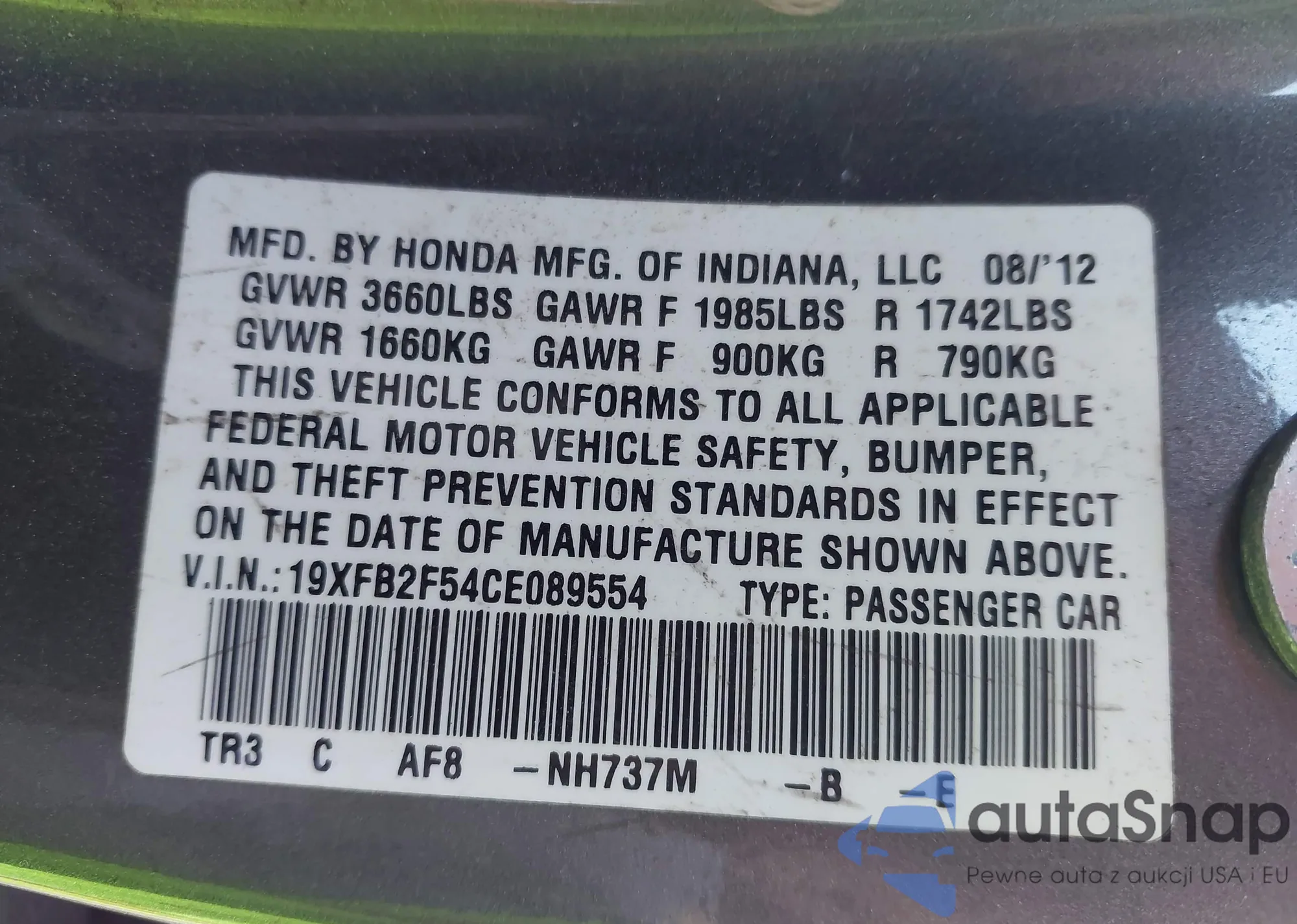 VIN: 19XFB2F54CE089554