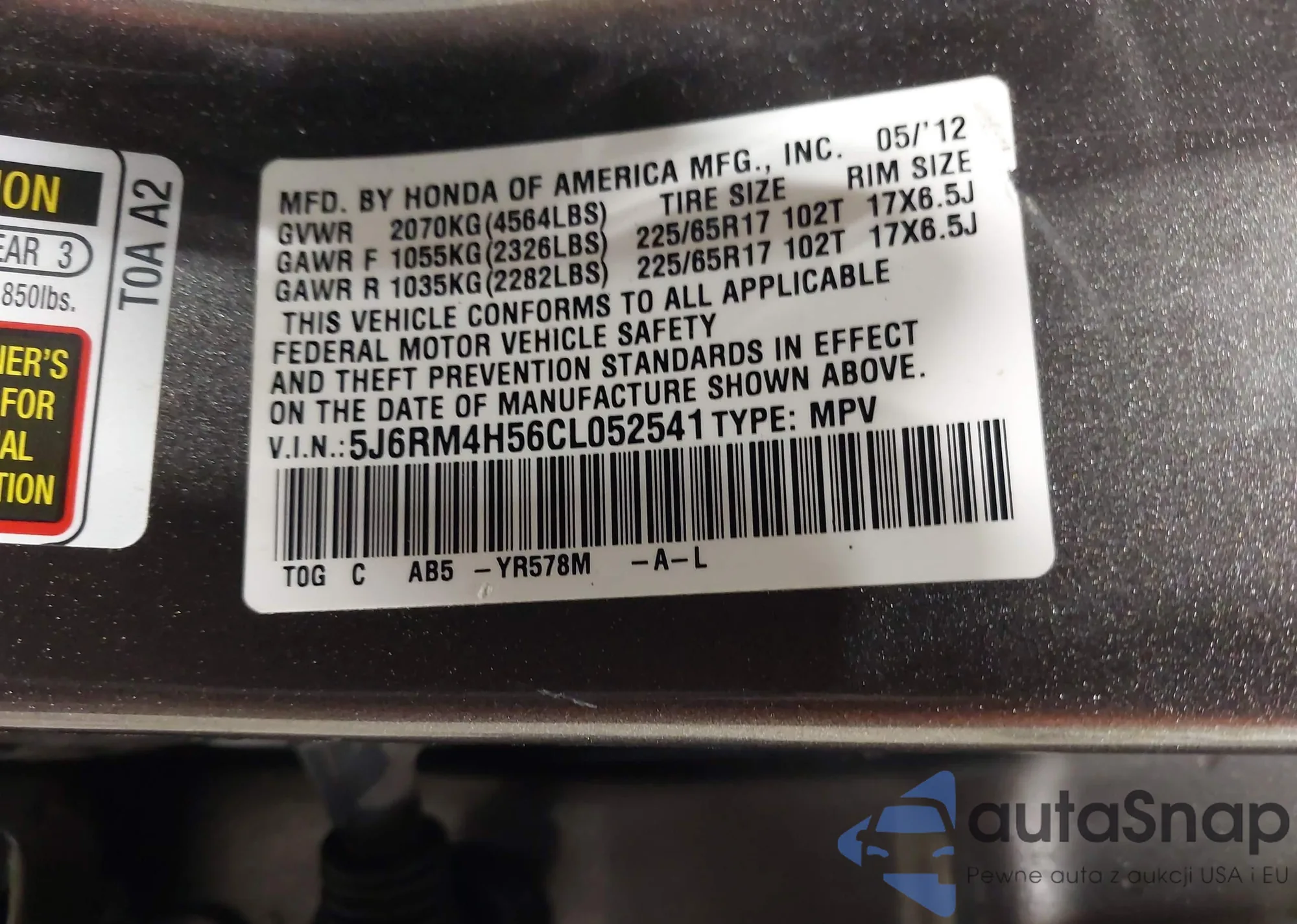 VIN: 5J6RM4H56CL052541