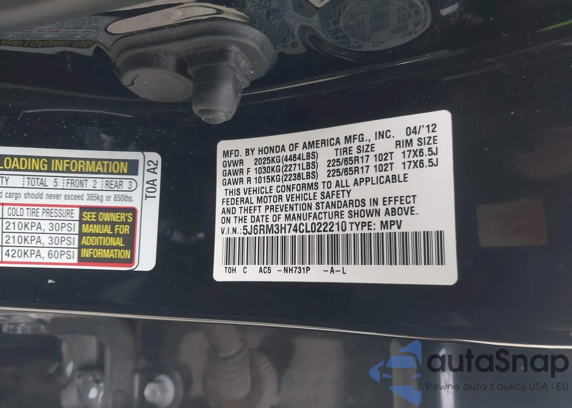 VIN: 5J6RM3H74CL022210