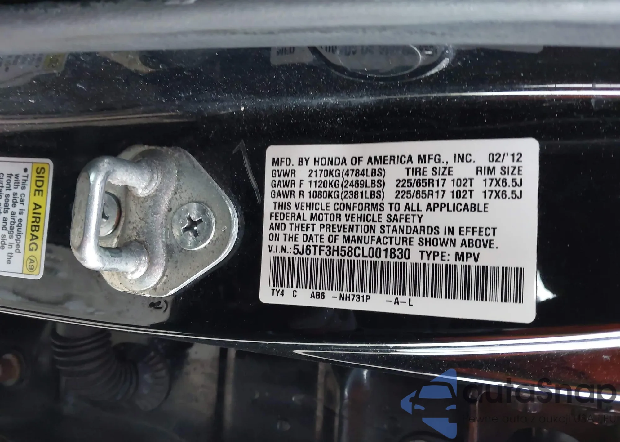 VIN: 5J6TF3H58CL001830