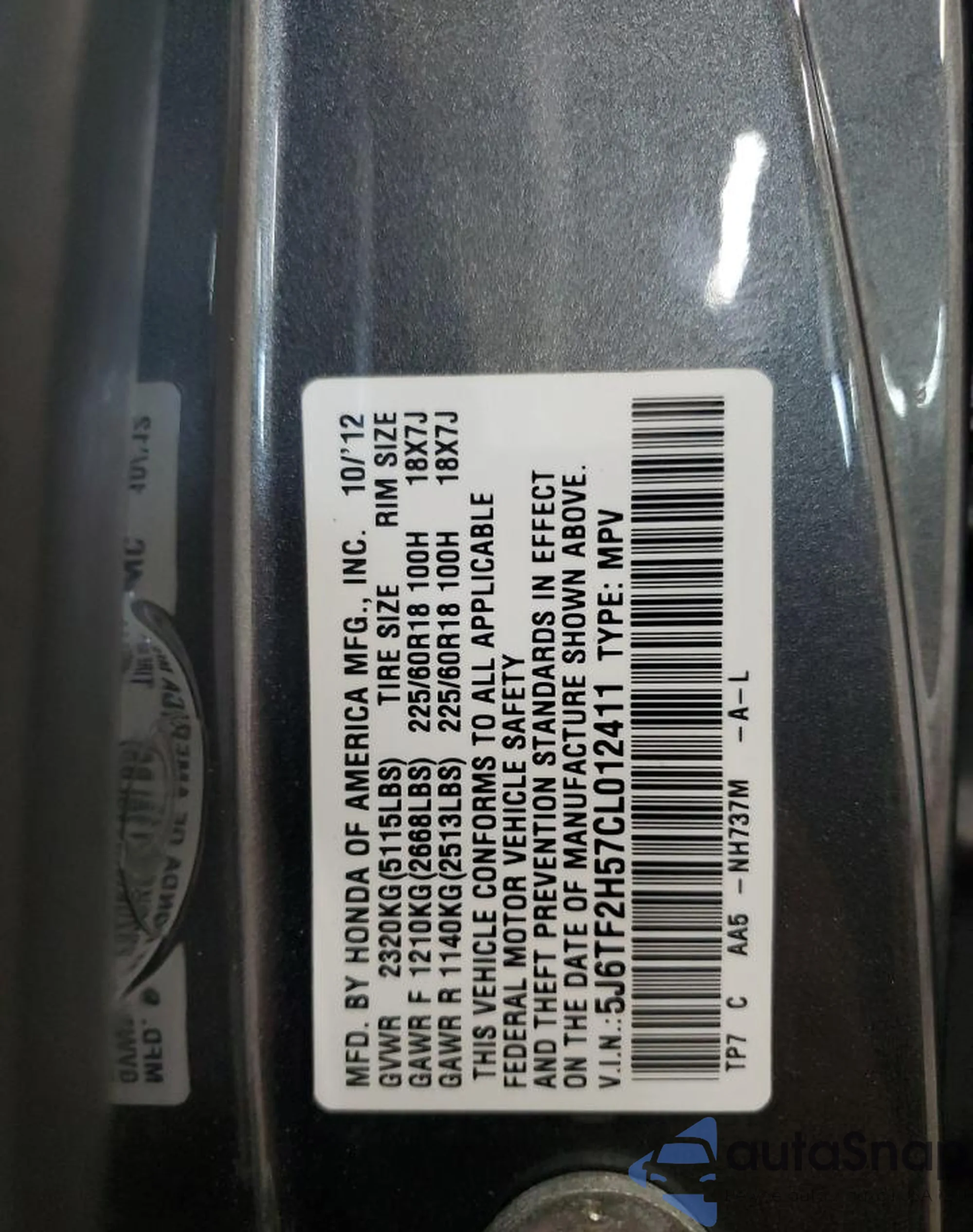 Автомобиль Honda Crosstour 2012 (VIN 5J6TF2H57CL012411) имеет документы, препятствующие регистрации. Могут возникнуть сложности при экспорте и регистрации. Обратитесь к экспертам AutaSnap для поиска альтернатив.