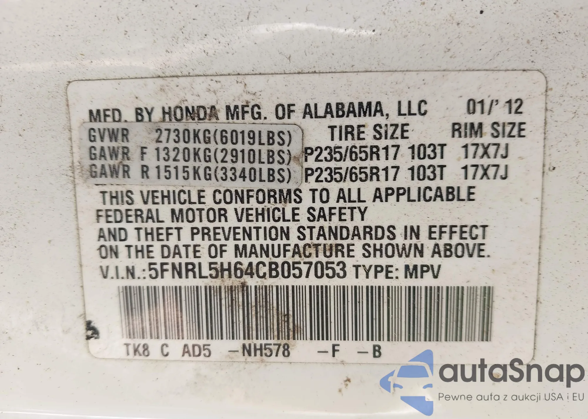 Автомобиль Honda Odyssey 2012 (VIN 5FNRL5H64CB057053) ранее не участвовал в торгах. Документы чистые, пробег соответствует или ниже среднего по рынку. Продаётся страховой компанией — рекомендуем покупку. Доставка в порт займет около 6–8 недель.