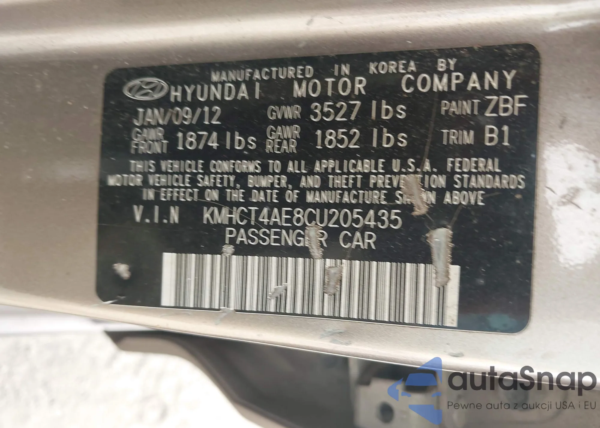 VIN: KMHCT4AE8CU205435