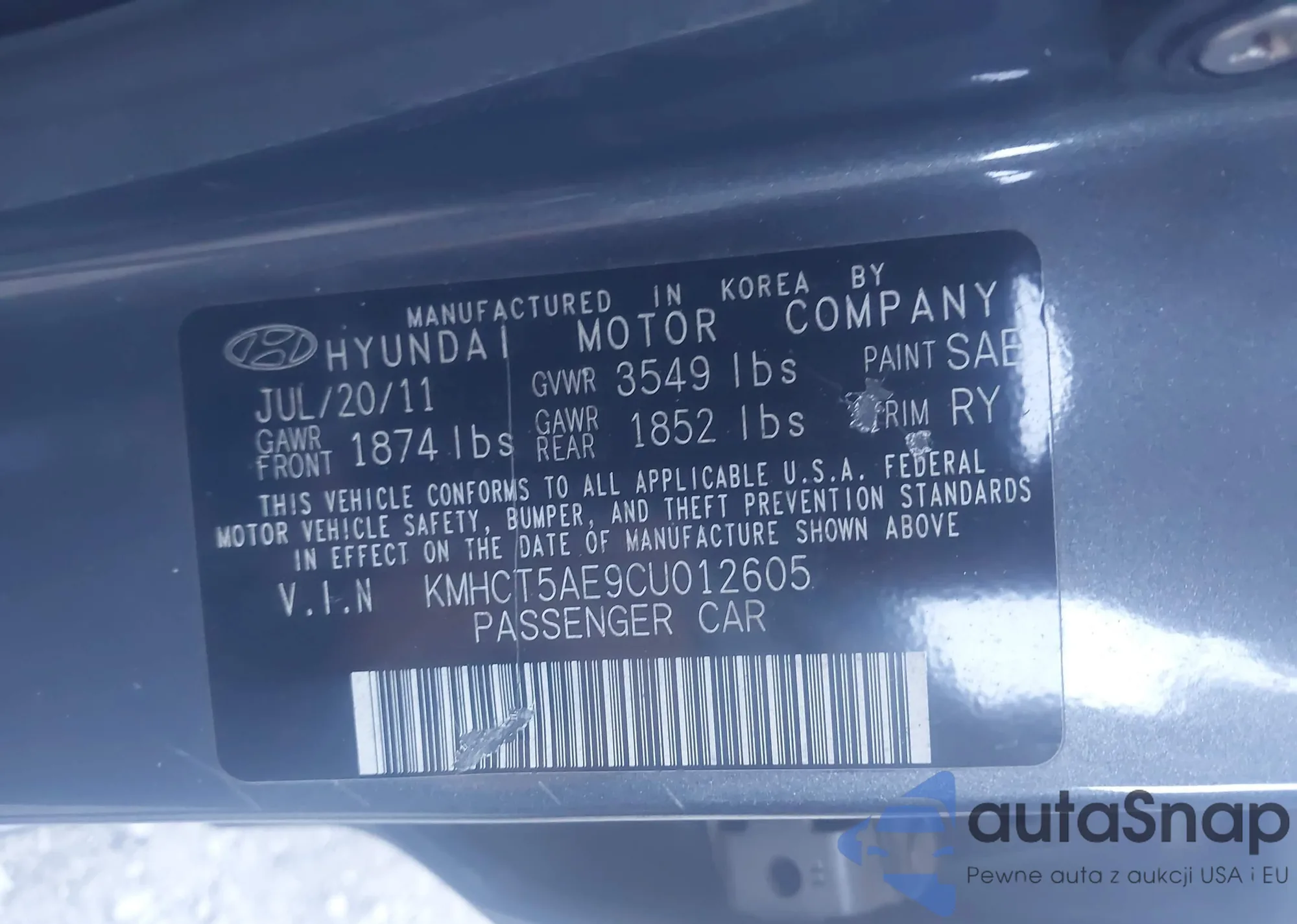 VIN: KMHCT5AE9CU012605