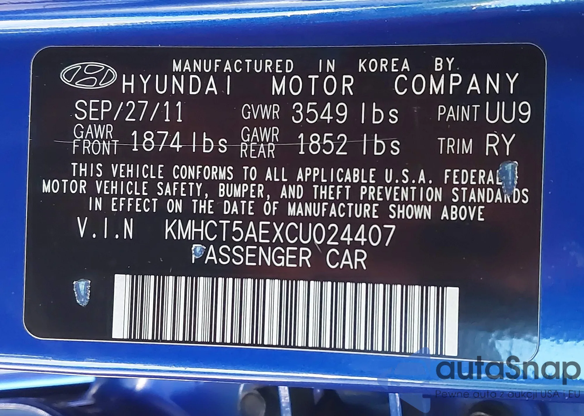 VIN: KMHCT5AEXCU024407