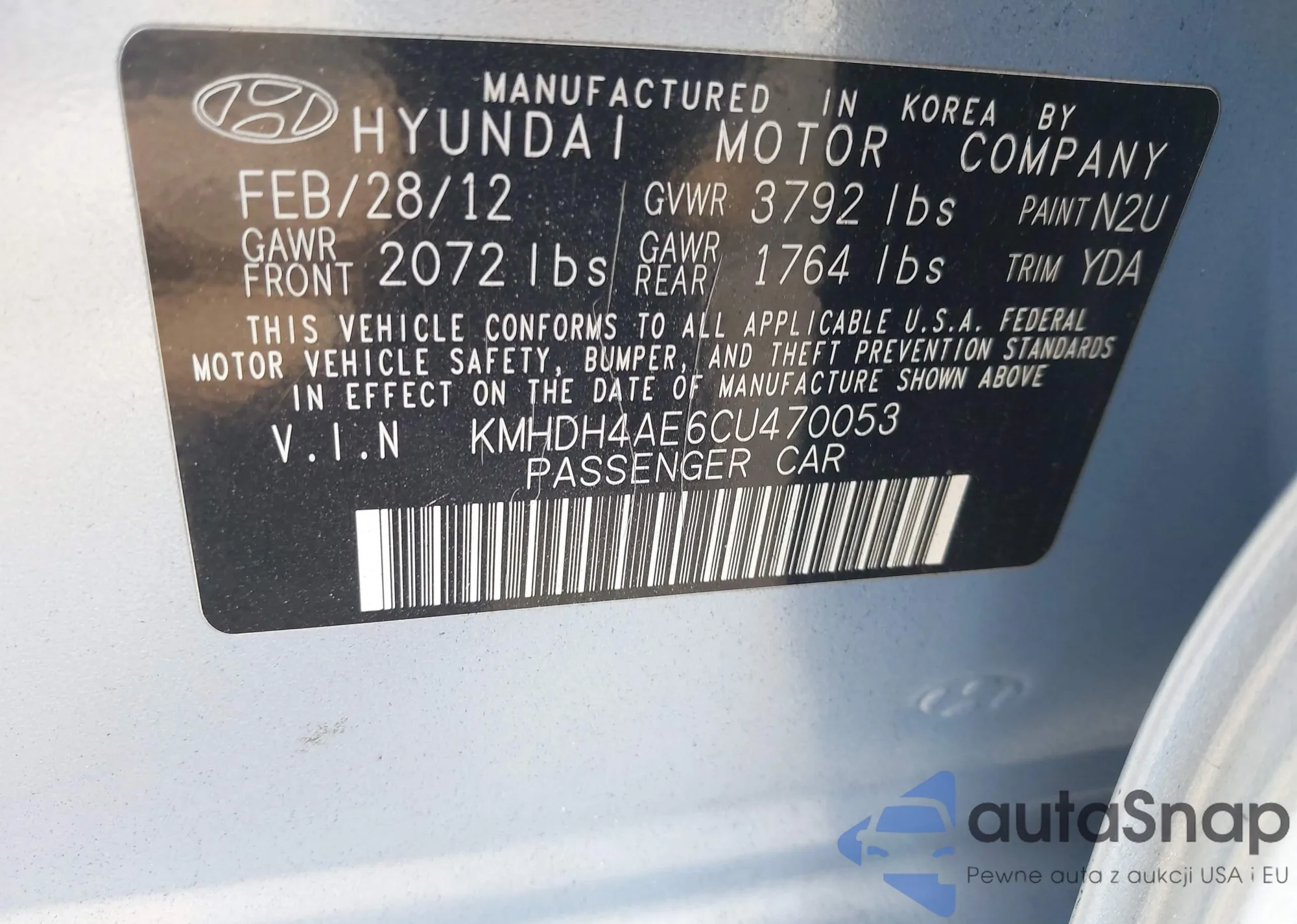 VIN: KMHDH4AE6CU470053