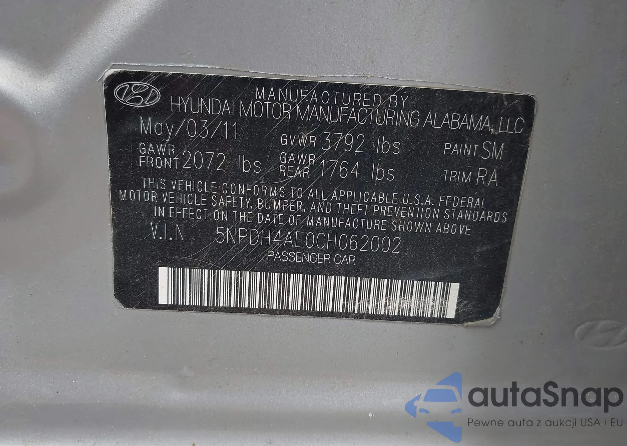 • VIN: 5NPDH4AE0CH062002