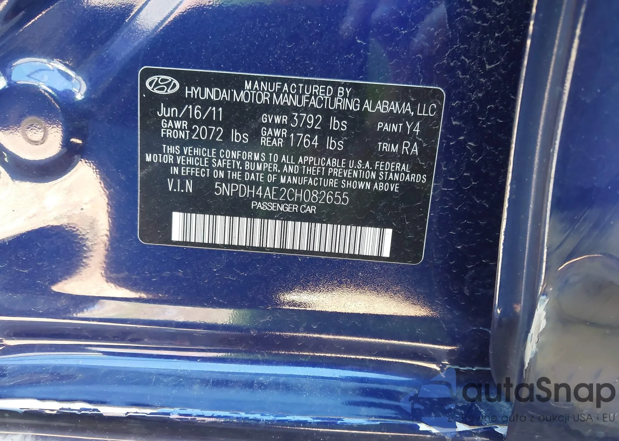 VIN: 5NPDH4AE2CH082655