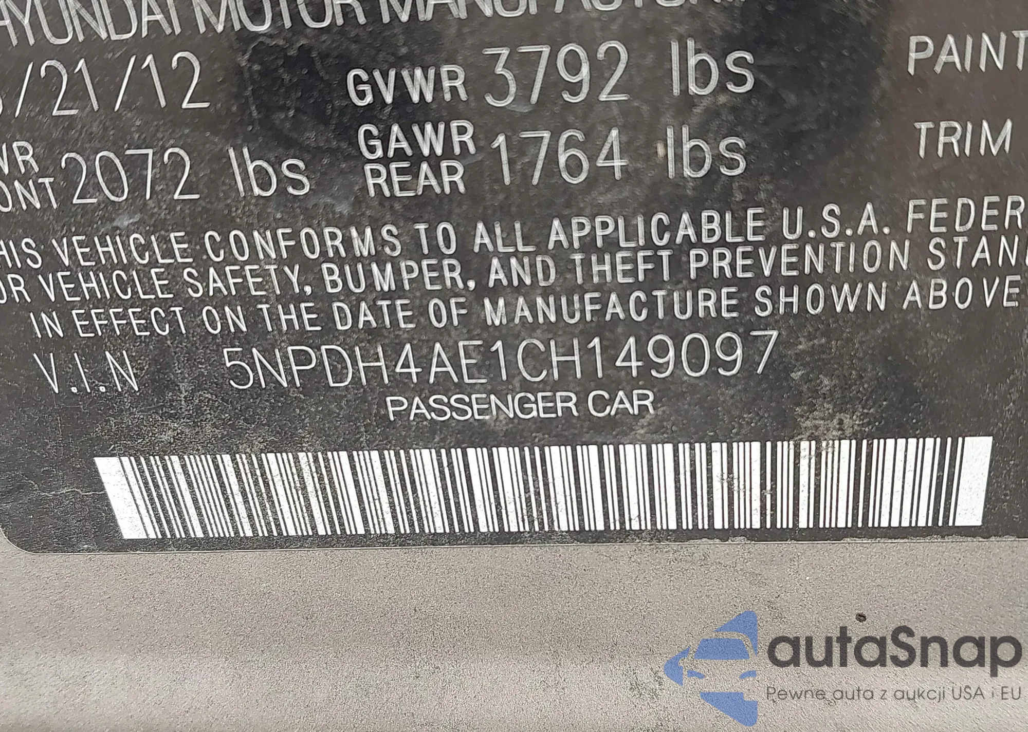 VIN: 5NPDH4AE1CH149097