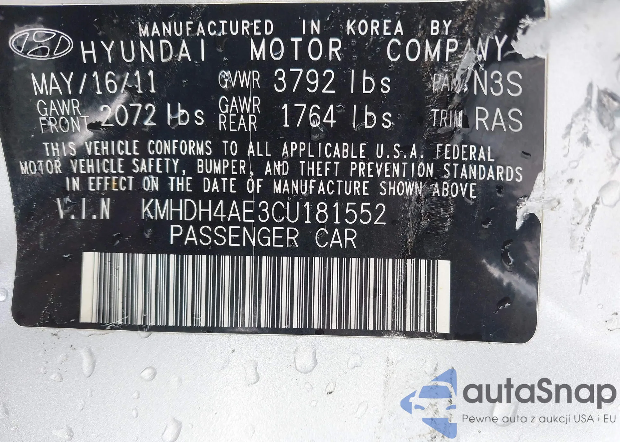 VIN: KMHDH4AE3CU181552