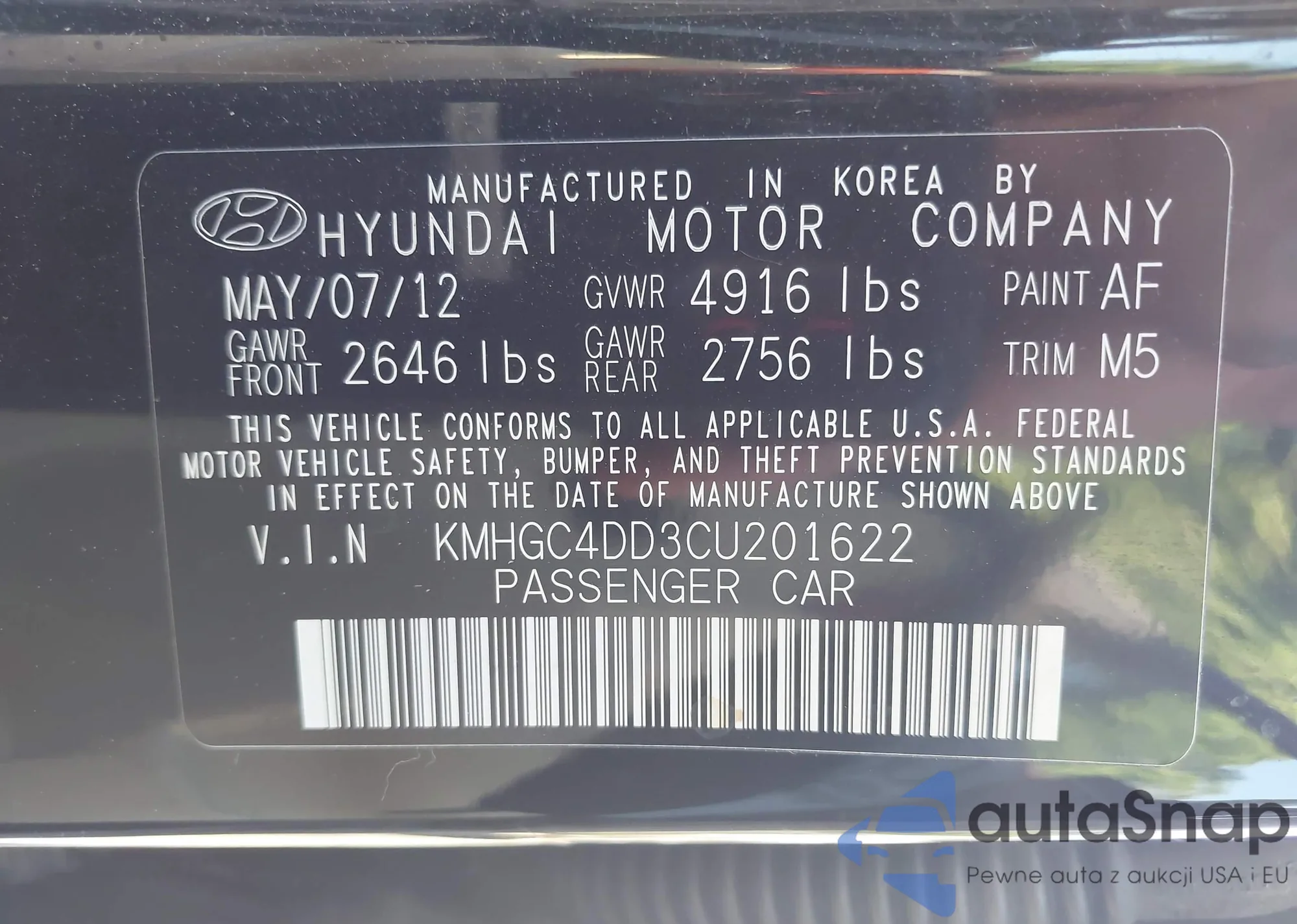 VIN: KMHGC4DD3CU201622