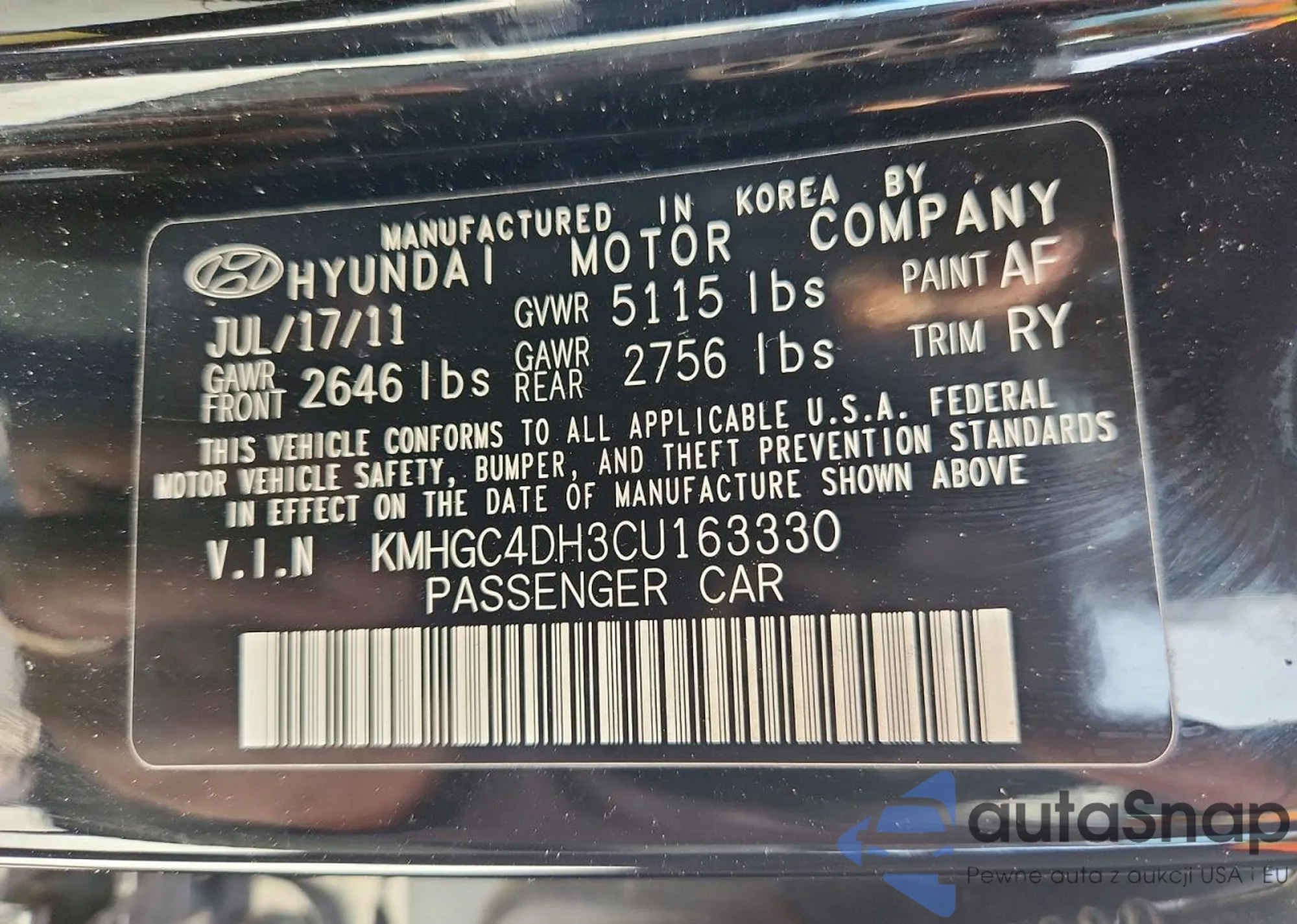 VIN: KMHGC4DH3CU163330