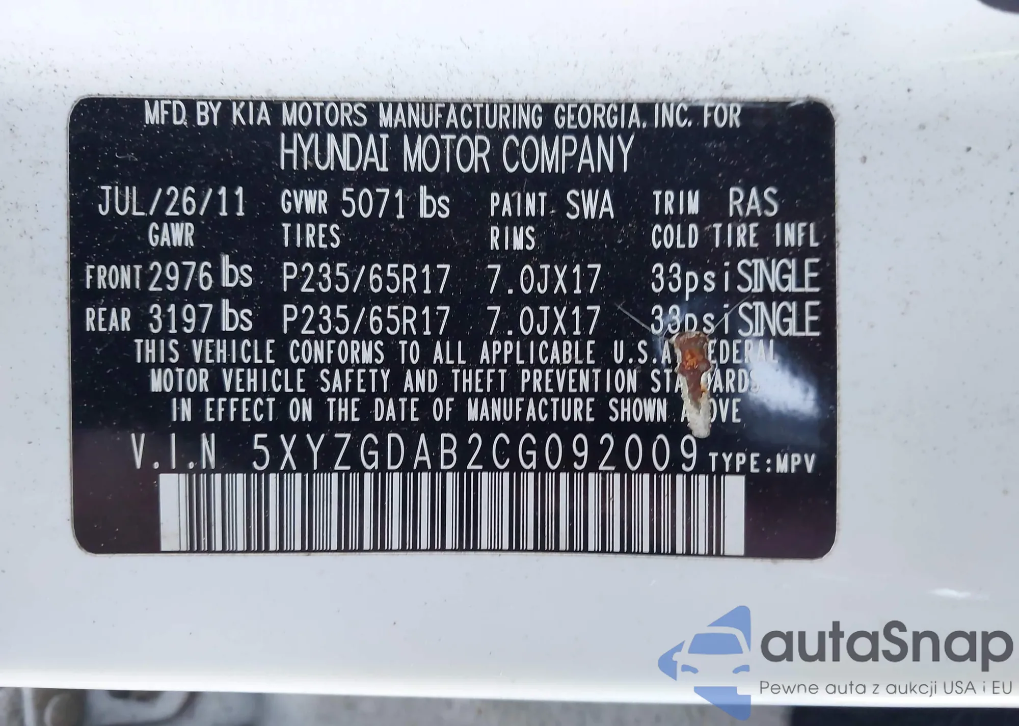 VIN: 5XYZGDAB2CG092009