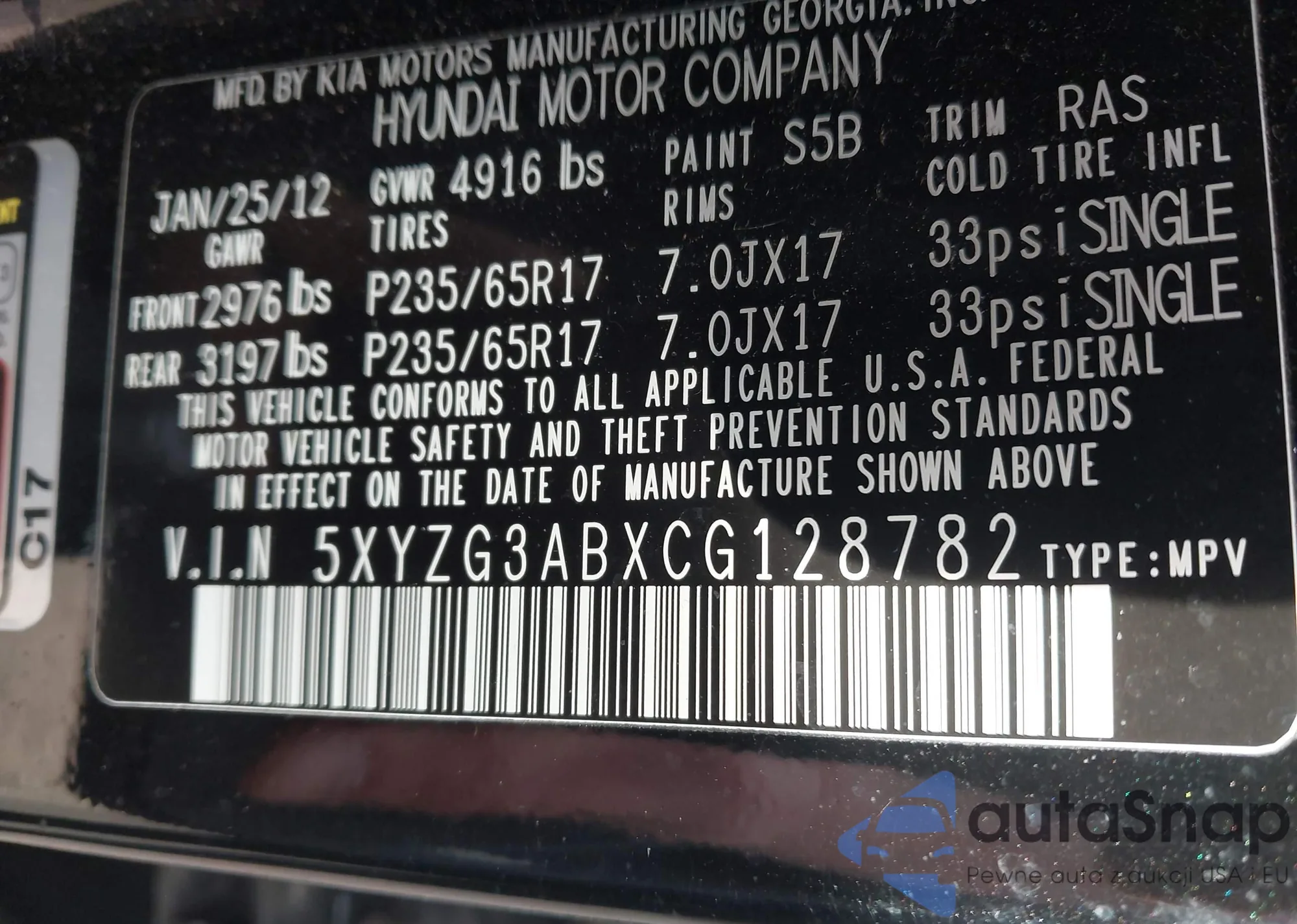VIN: 5XYZG3ABXCG128782