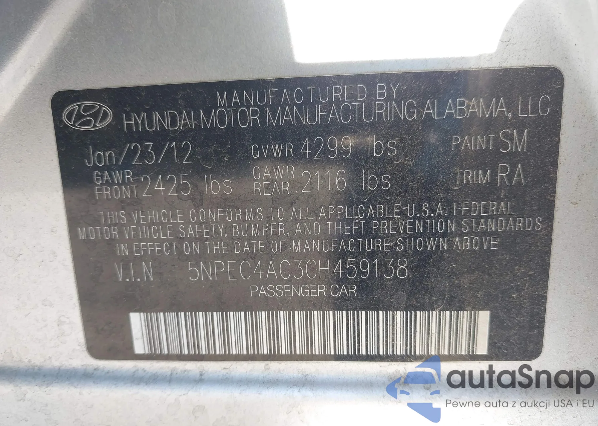 • VIN: 5NPEC4AC3CH459138