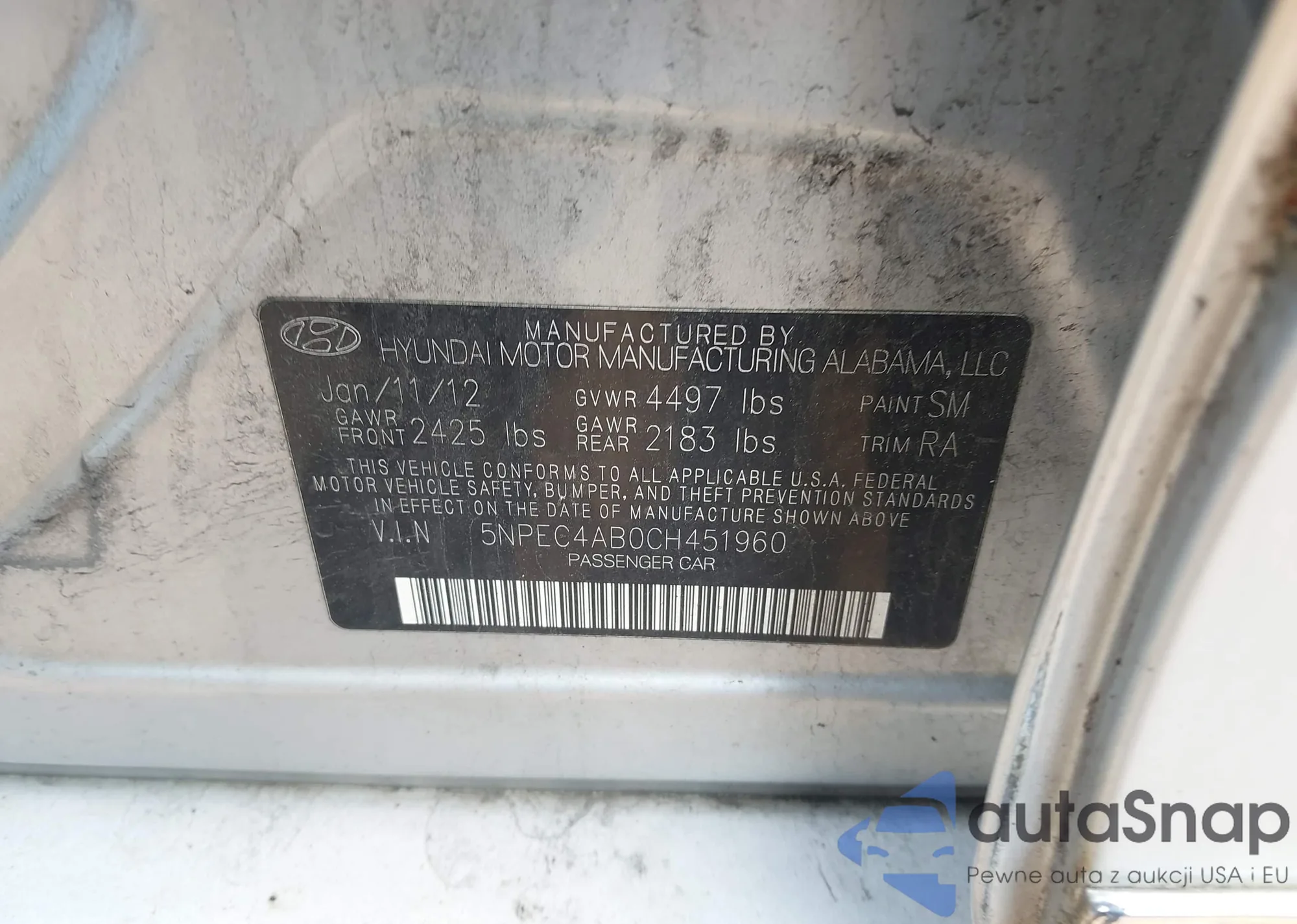 VIN: 5NPEC4AB0CH451960