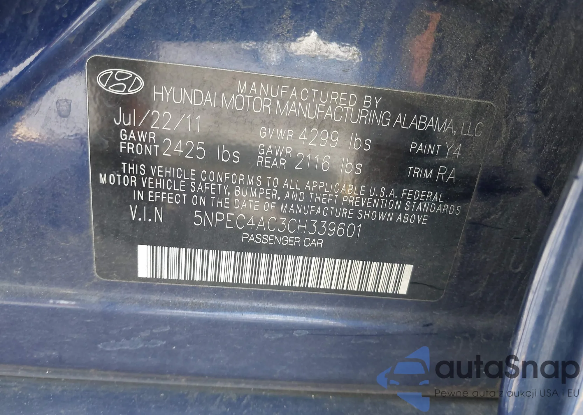 VIN: 5NPEC4AC3CH339601