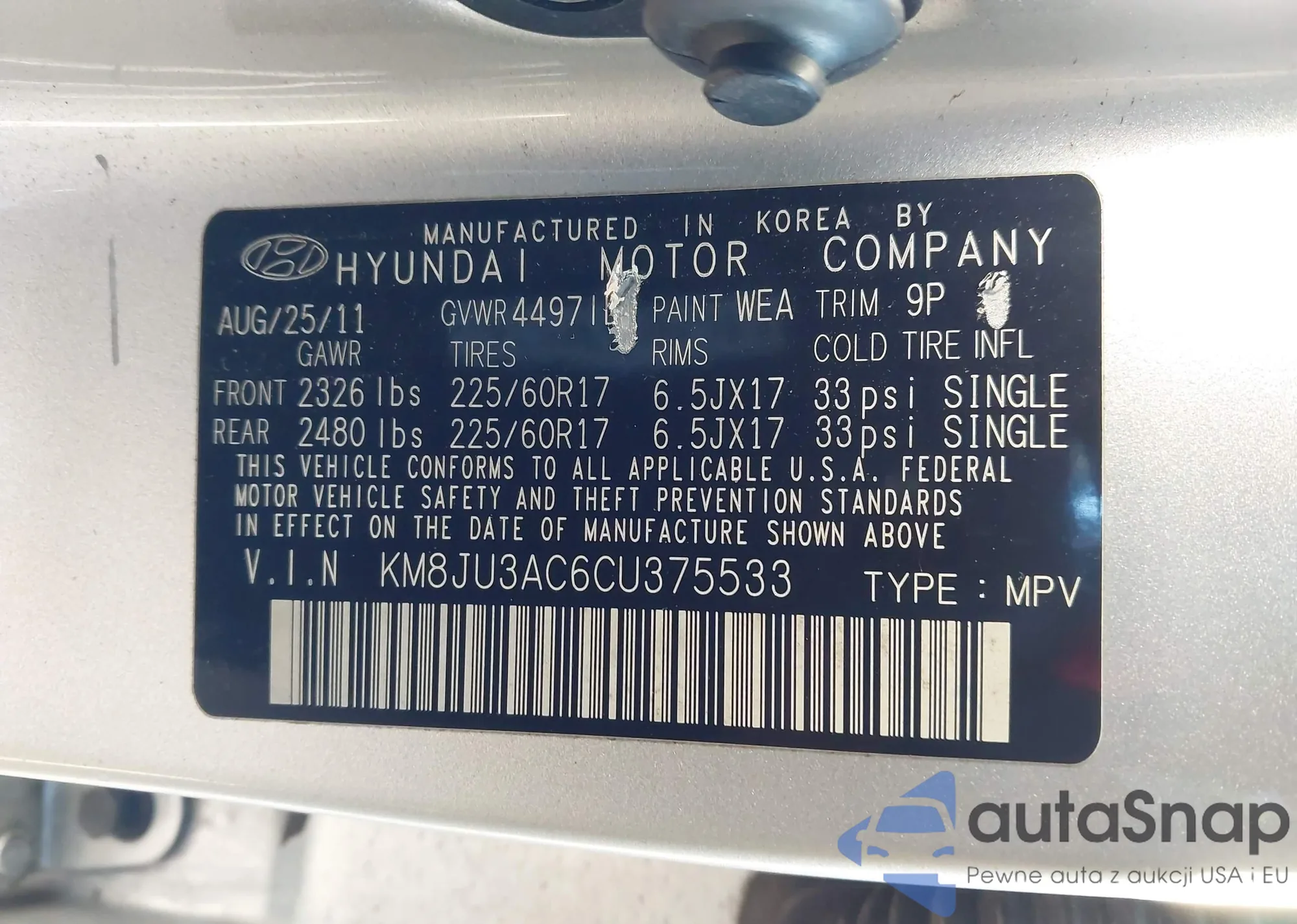 VIN: KM8JU3AC6CU375533