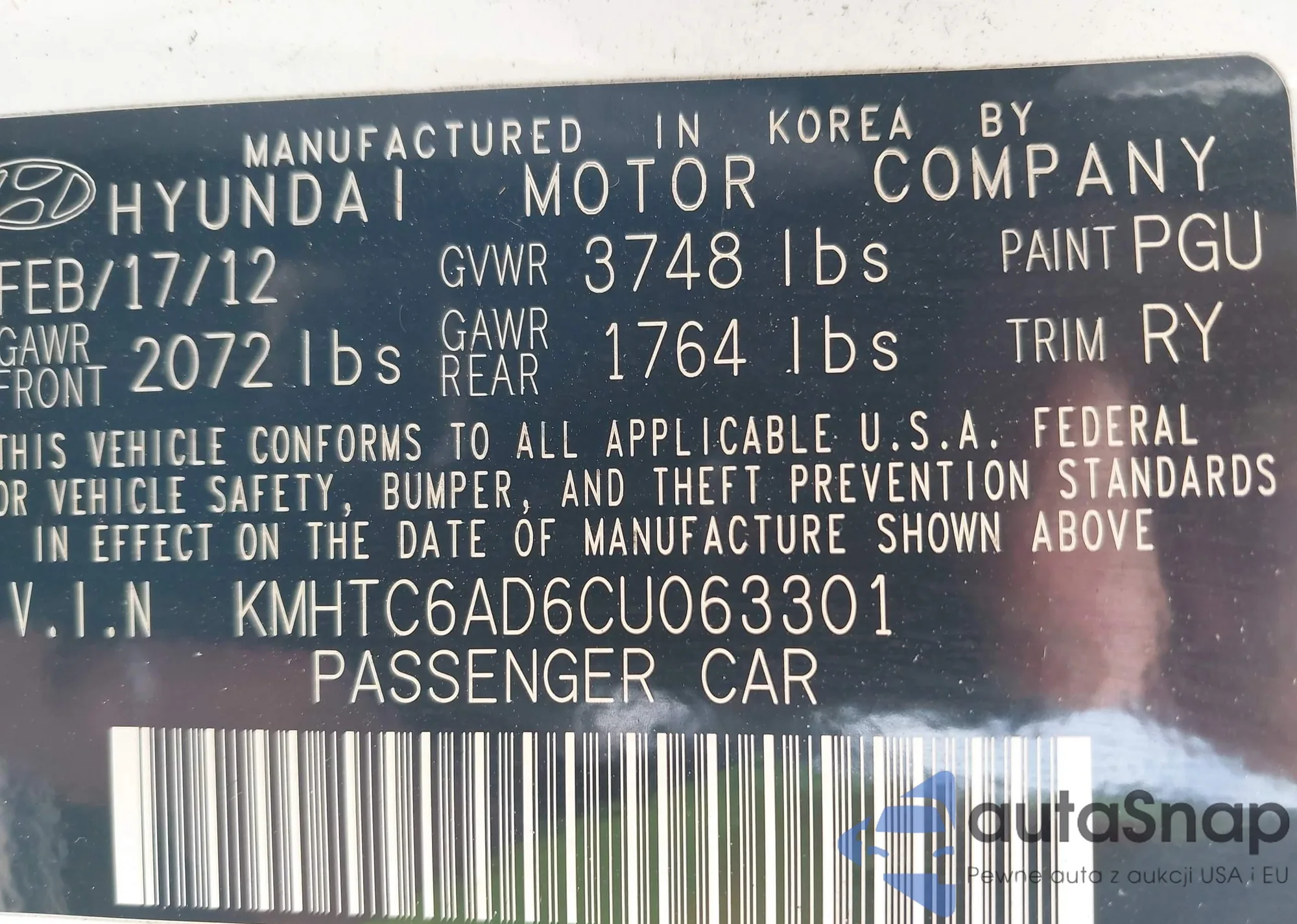 VIN: KMHTC6AD6CU063301